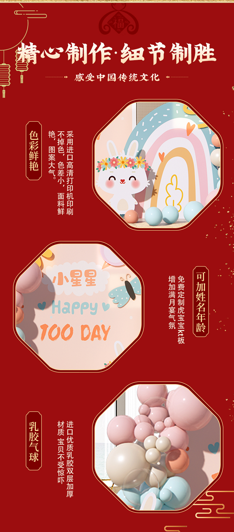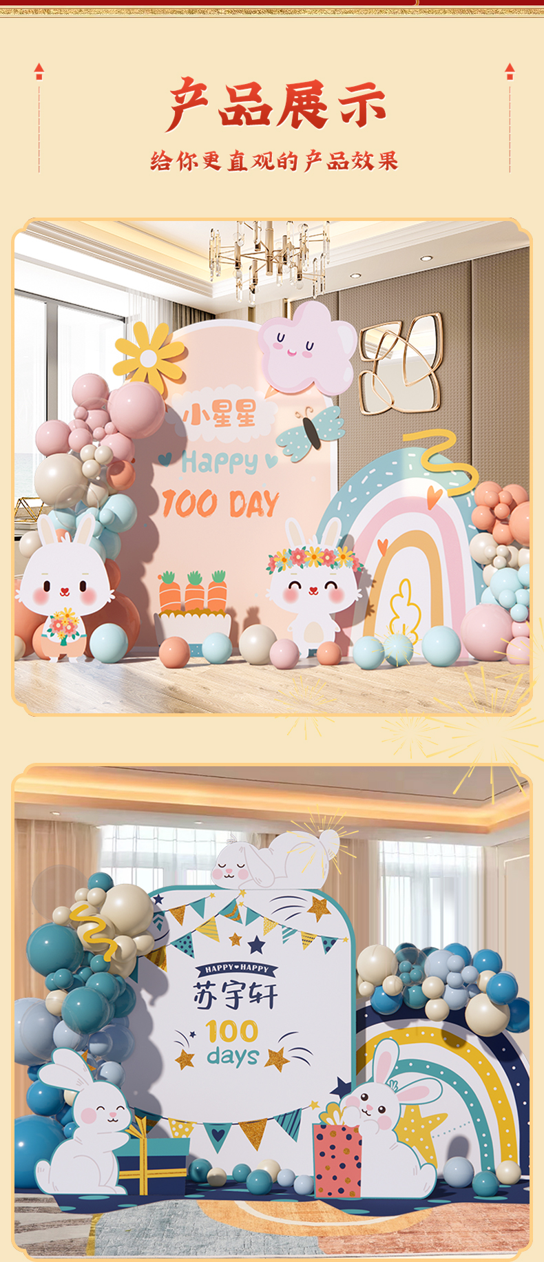 兔寶寶滿月酒禮百天百日宴布置男女孩家里氣球場景裝飾背景墻kt板
