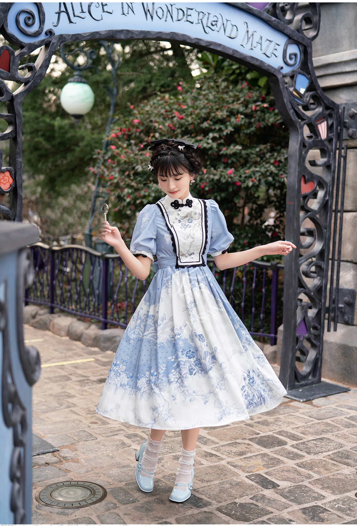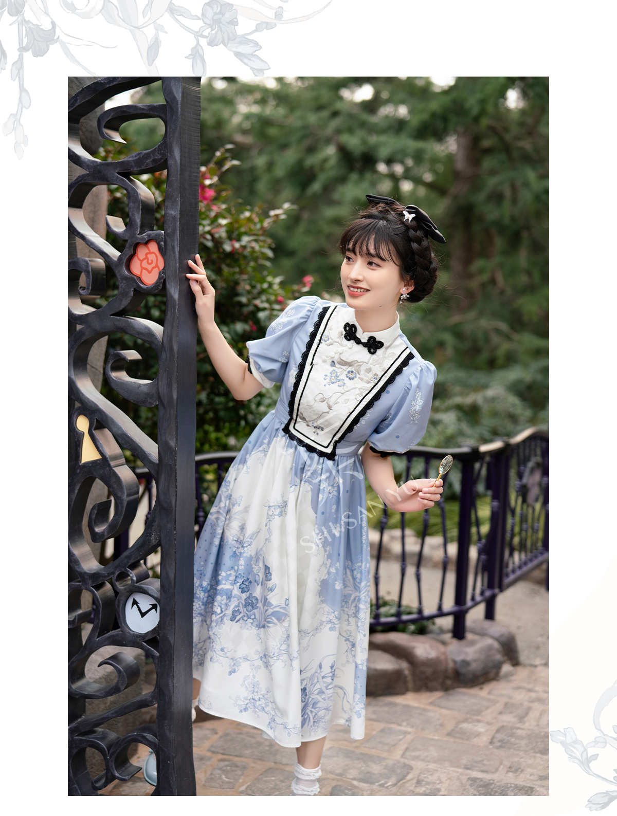 十三余小豆蔻兒[迪士尼愛麗絲-不思議冒險]國風蕾絲連衣裙女裝夏