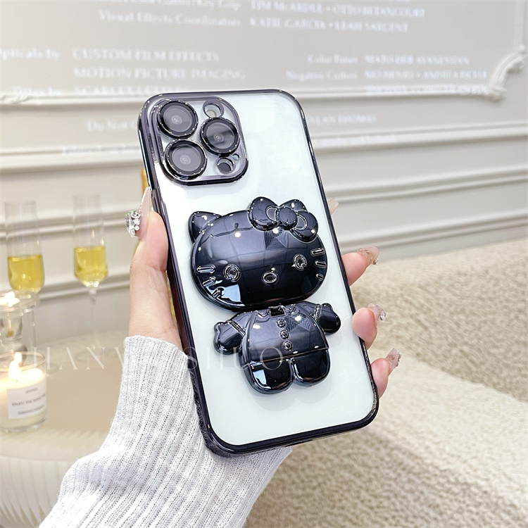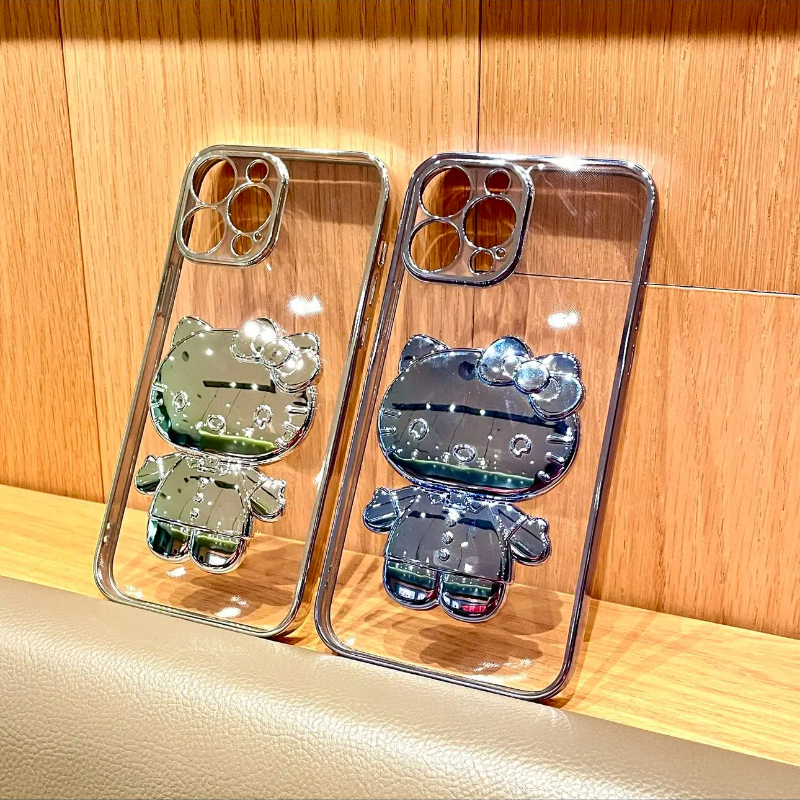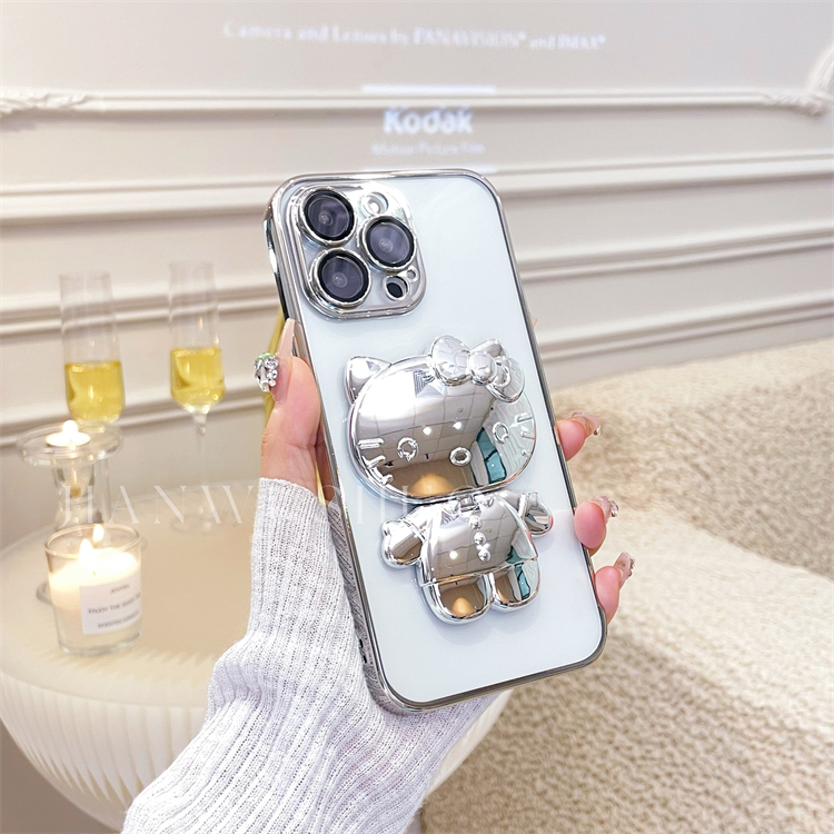 帶鏡頭膜適用蘋果14pro手機殼新款iPhone13promax可愛KT貓咪支架15pro補妝鏡子保護套11女12pm卡通硅膠防摔軟