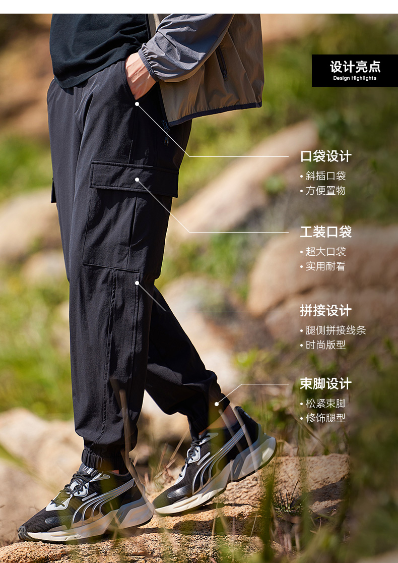拓路者速干運動褲男2023秋季新款黑色束腳工裝褲休閑褲戶外速干褲