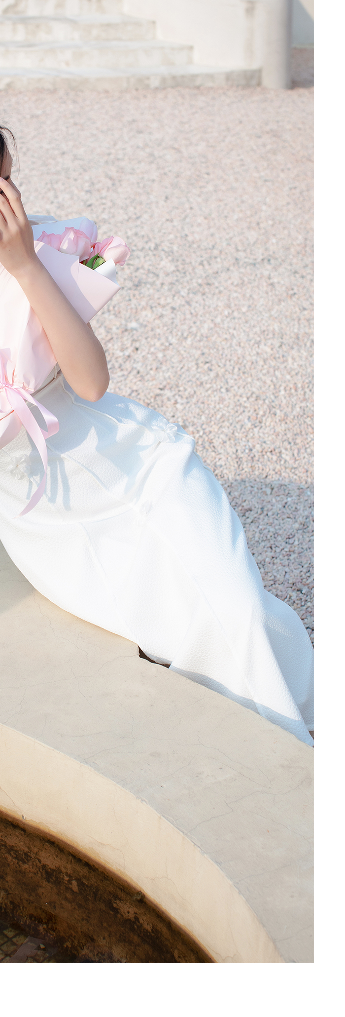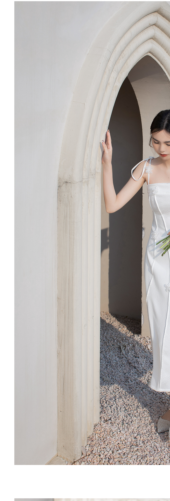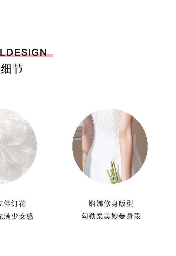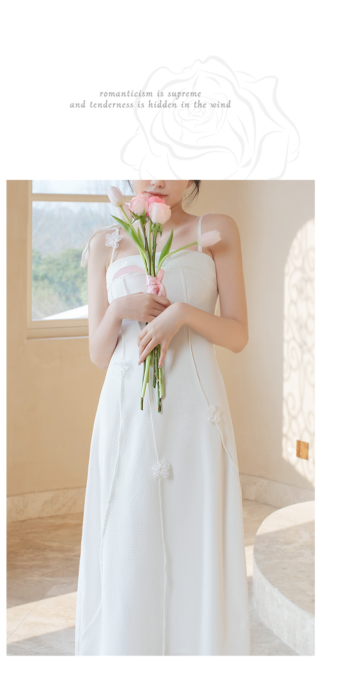 水晶|原創設計感法式溫柔連衣裙白色肌理花朵抹胸吊帶修身輕婚紗