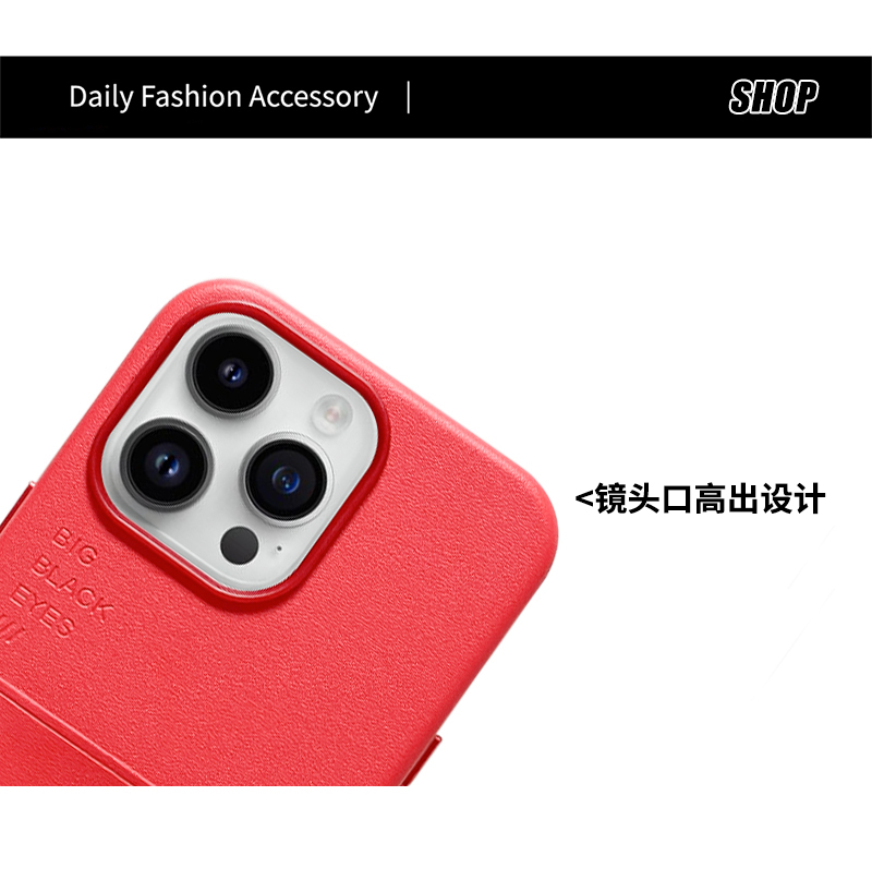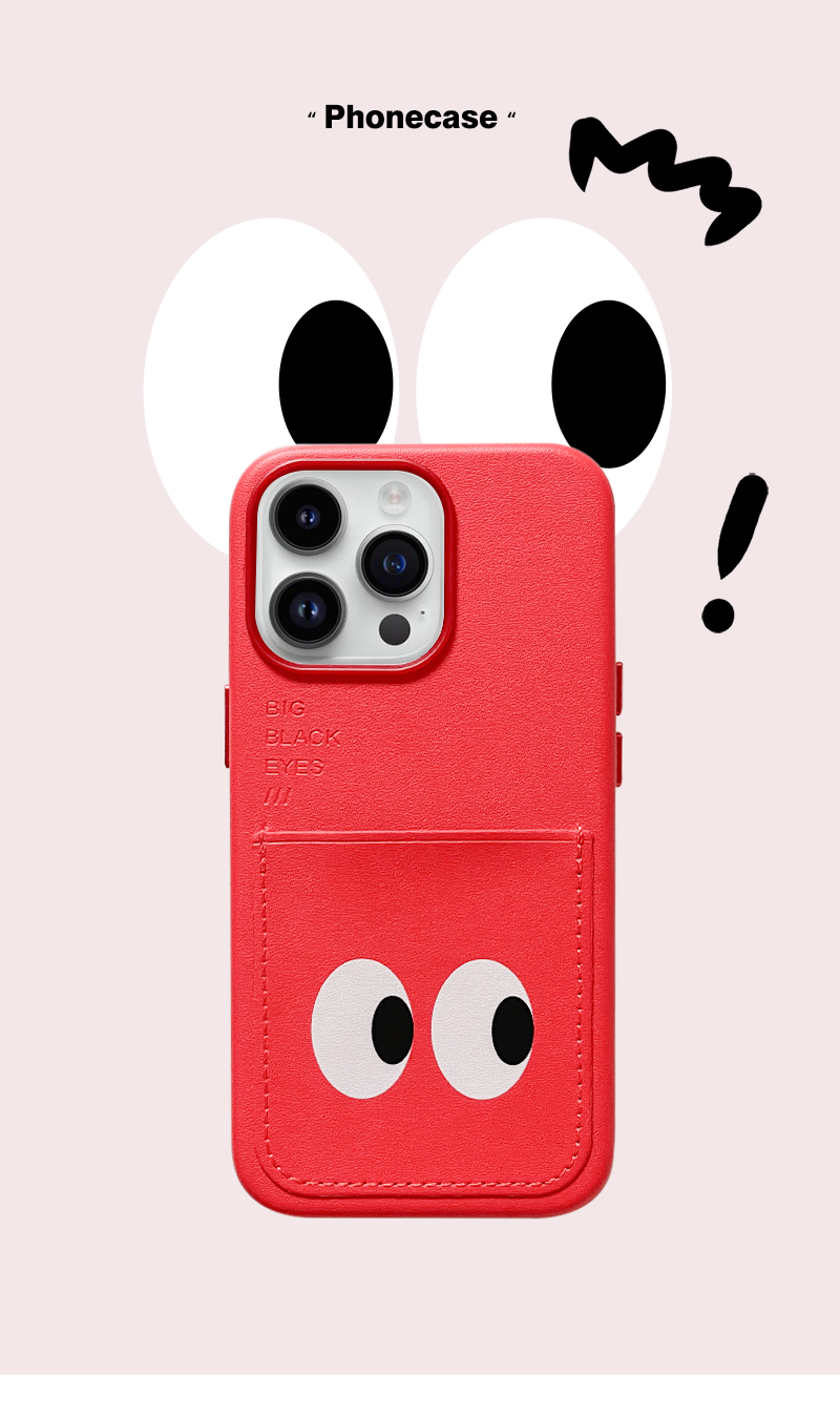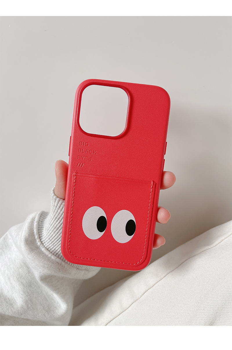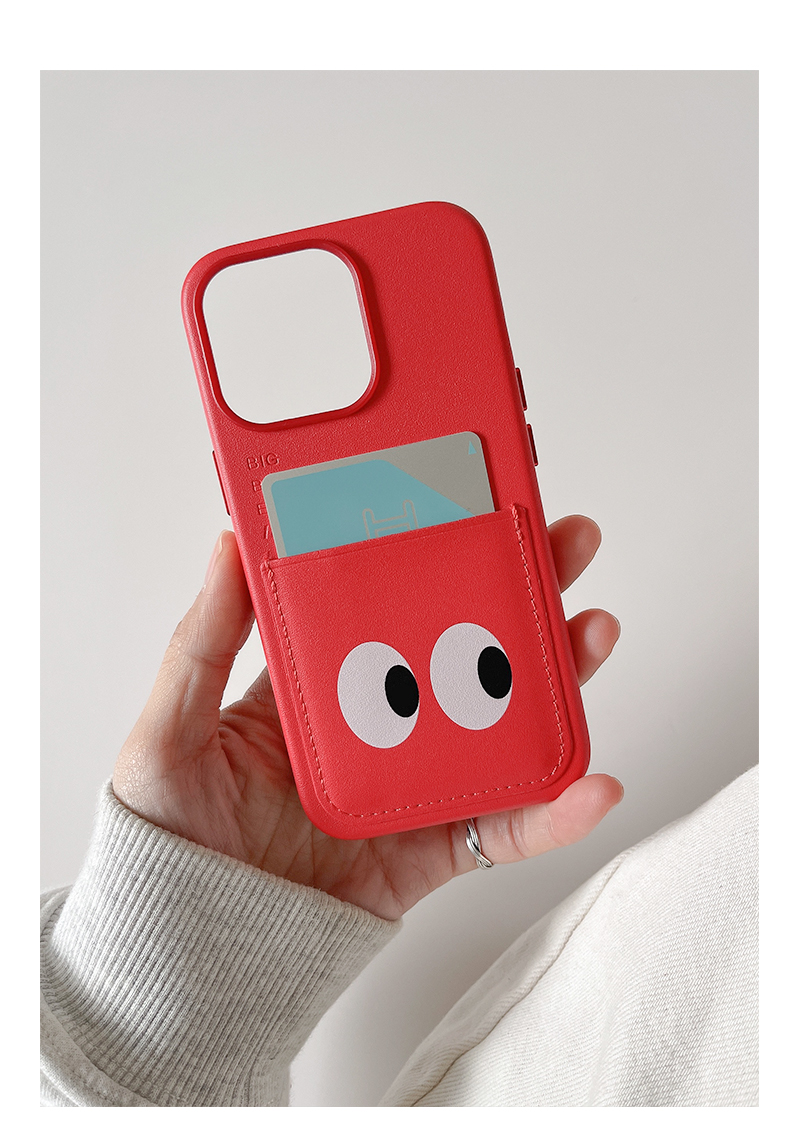 ins極簡經典紅色眼睛口袋手機殼蘋果14plus系列2023年新款蘋果12全包皮質適用iphone13promax原創小眾保護套