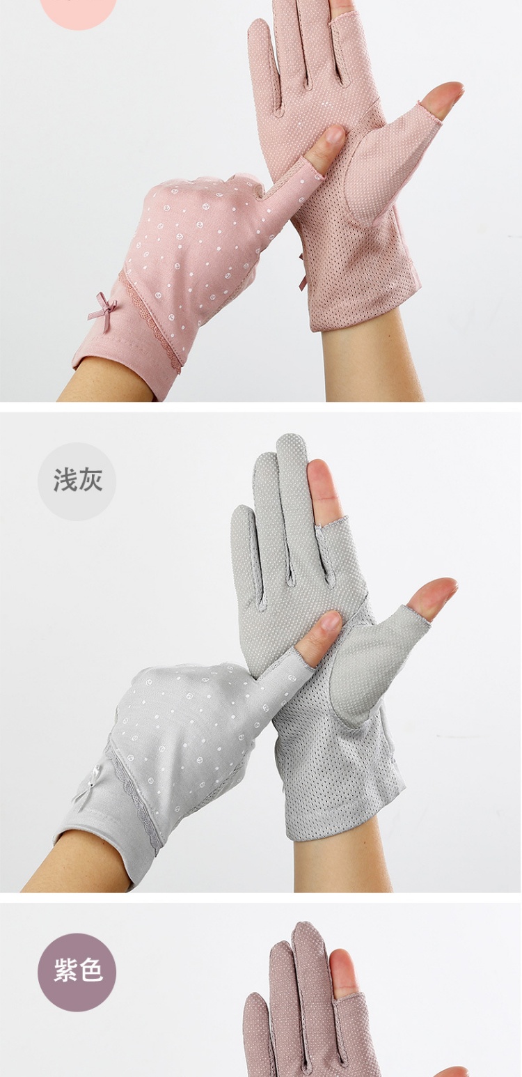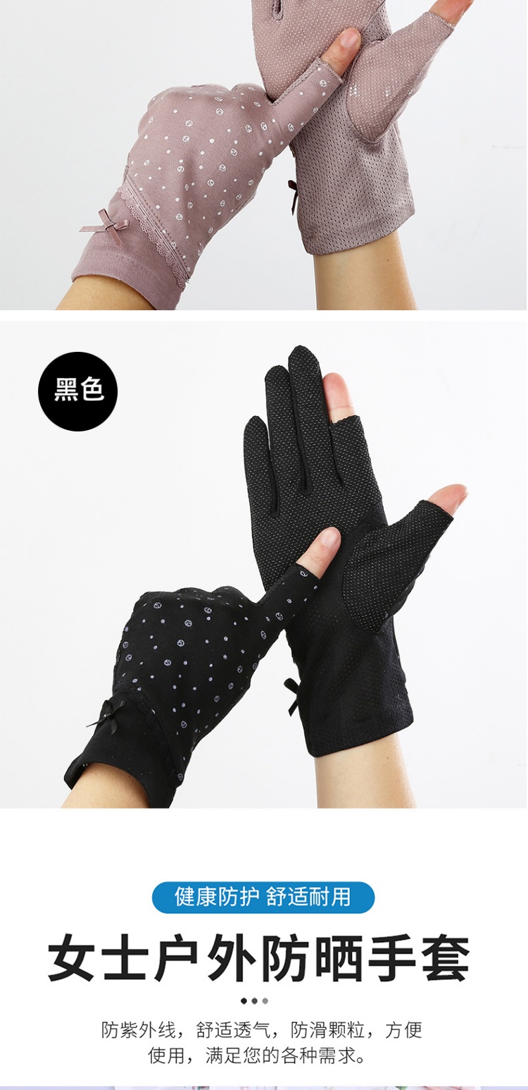 防曬手套女薄款開車防紫外線夏季騎行防滑美甲半指采茶護手棉手套
