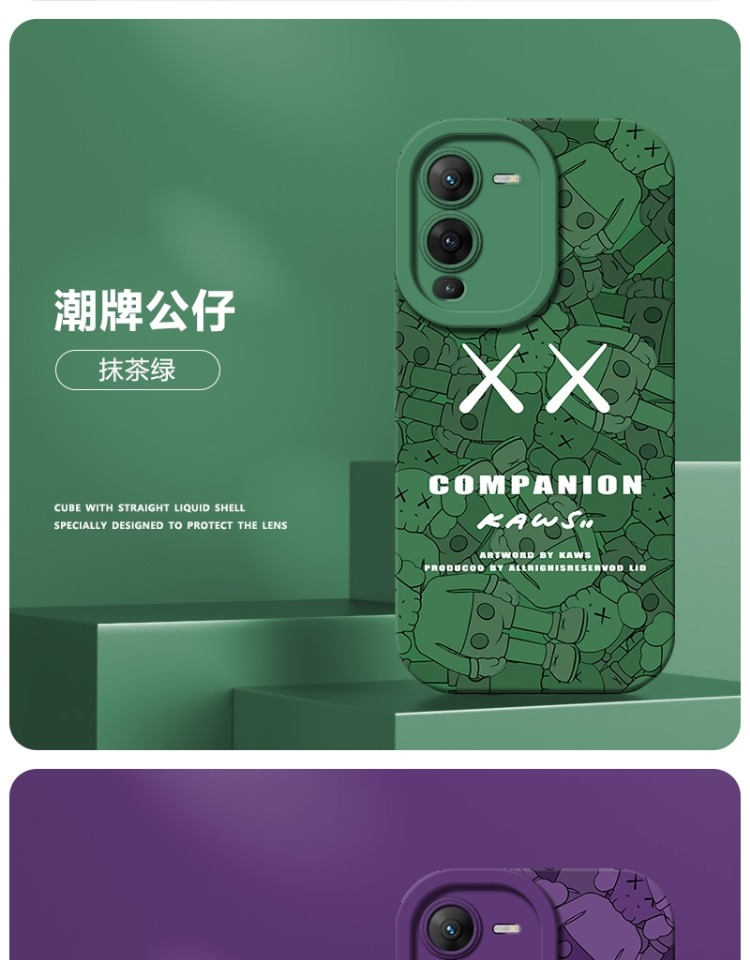 潮牌KAWS適用vivoX90手機殼x80保護套x70t個性60pro+軟vivoS15男士s12e硅膠t2/t1新款y77/y93s暴力熊y33s/s7e