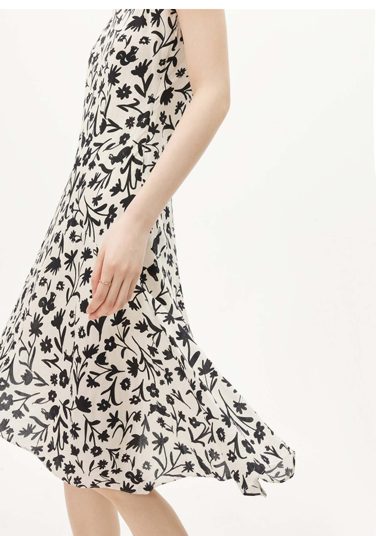LILY2023夏新款女裝柔軟垂墜人絲時尚藝術印花復古優雅性感吊帶裙