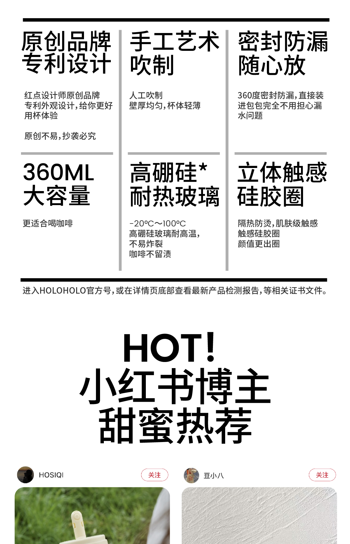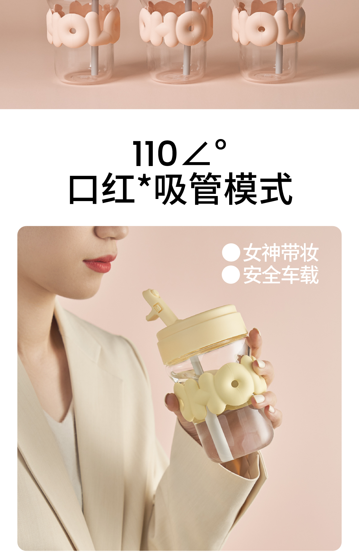 holoholo玻璃水杯女生高顏值耐熱高溫吸管杯學生便攜隨行咖啡杯子