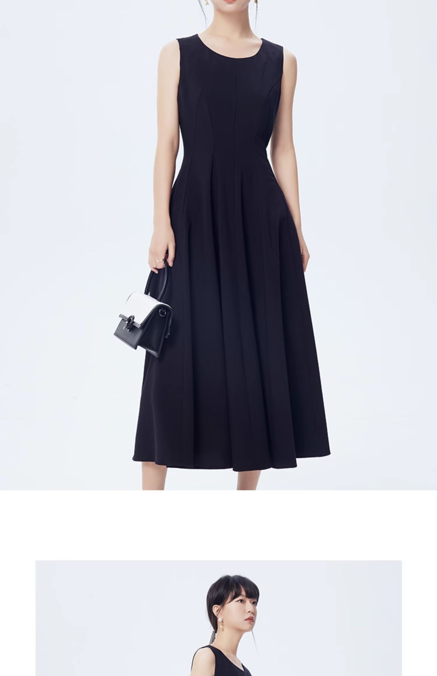 gcrues2023秋季新款黑色針織無袖垂墜感連衣裙女設計感顯瘦長裙子