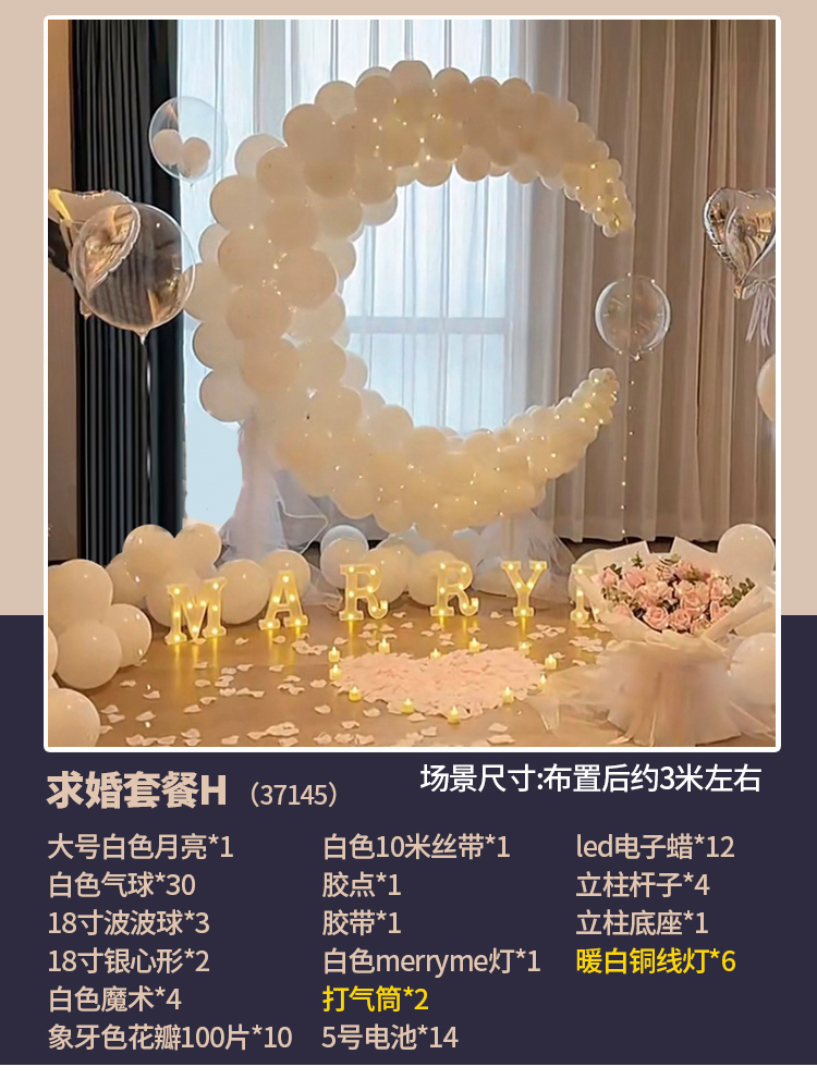 室內求婚表白布置用品氣球套餐浪漫創意儀式感道具大愛心月亮汽球