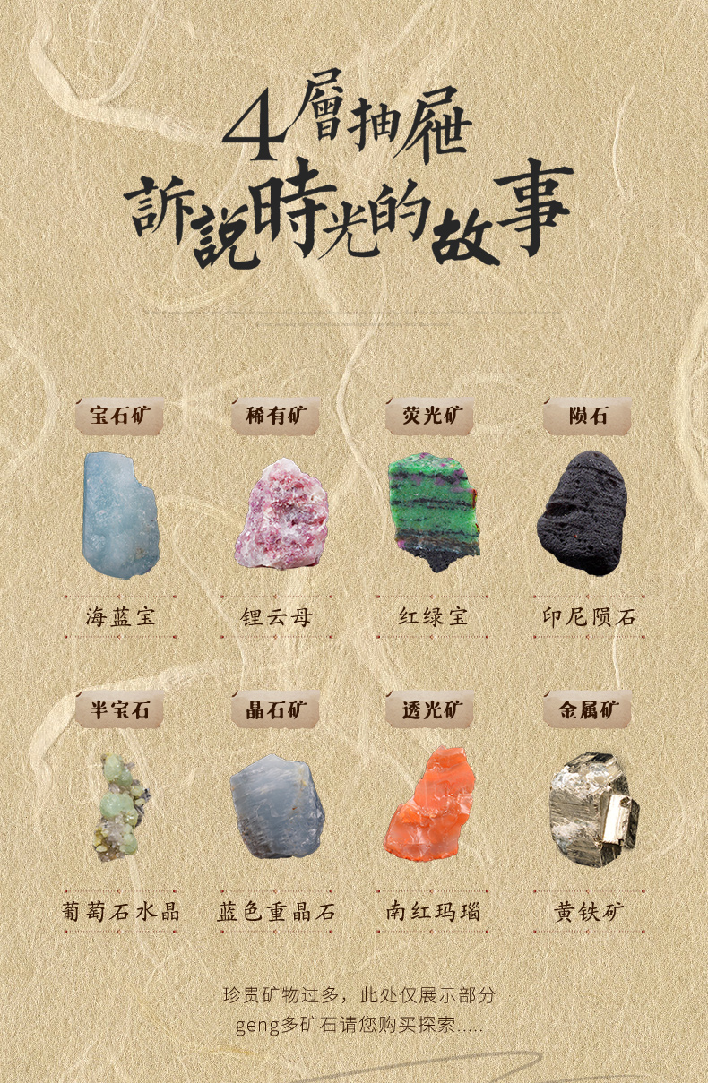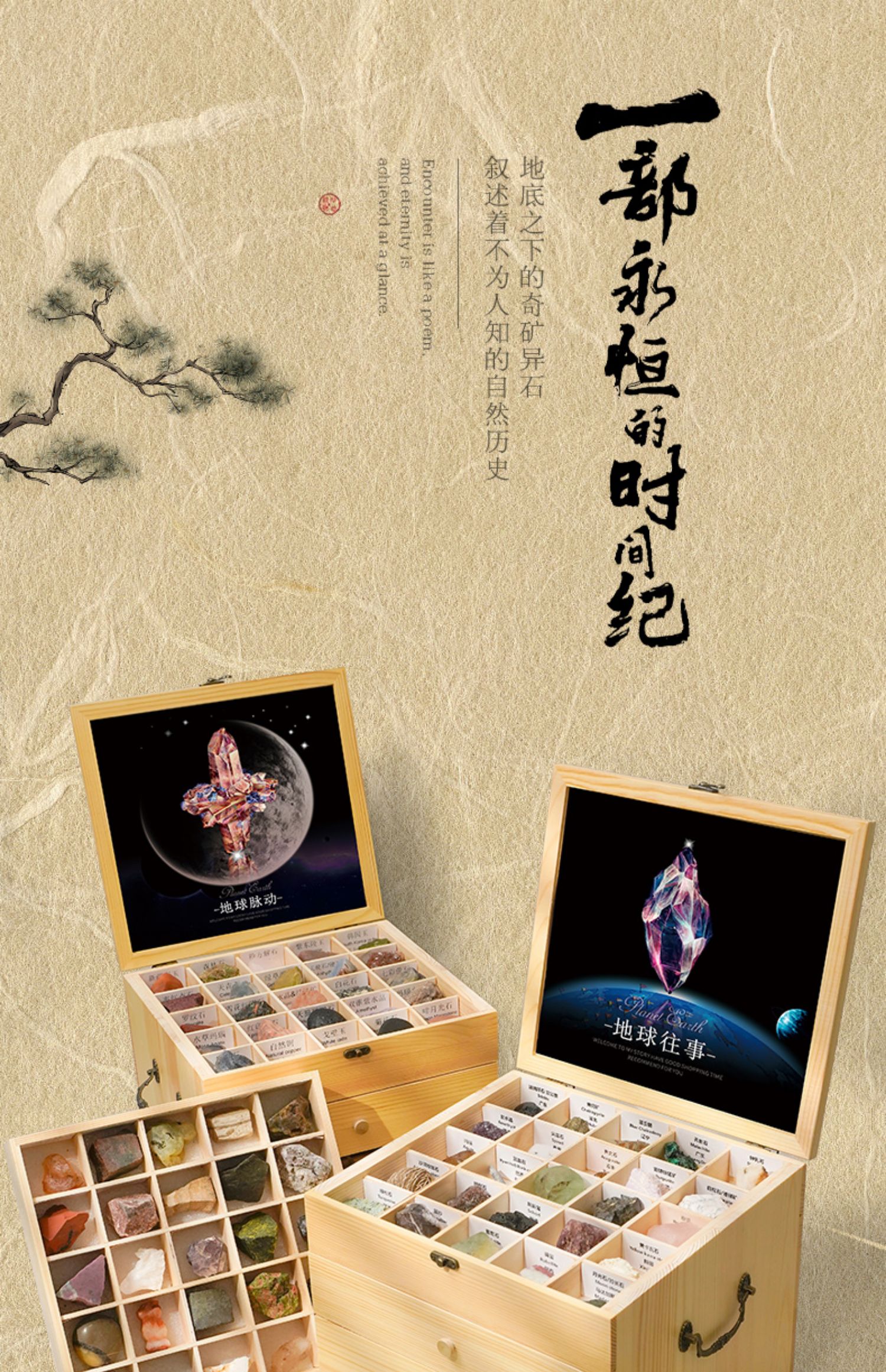 天縱晶華100種地球往事礦石套裝水晶石頭礦物原石標本進階收藏盒