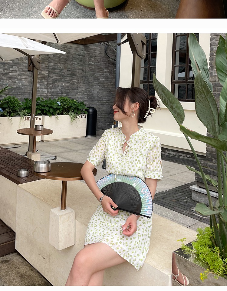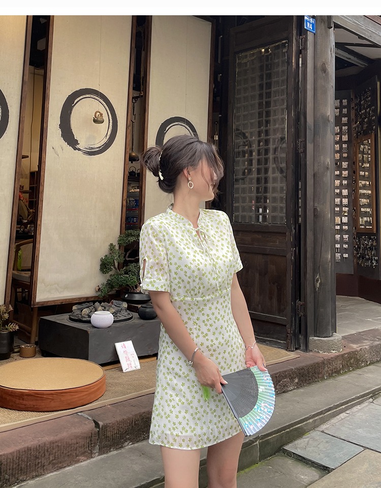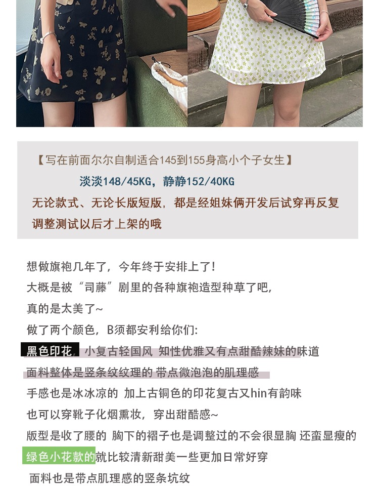 【5折撿漏】爾爾自制小個子復古國風短袖連衣裙中裙立領收腰旗袍