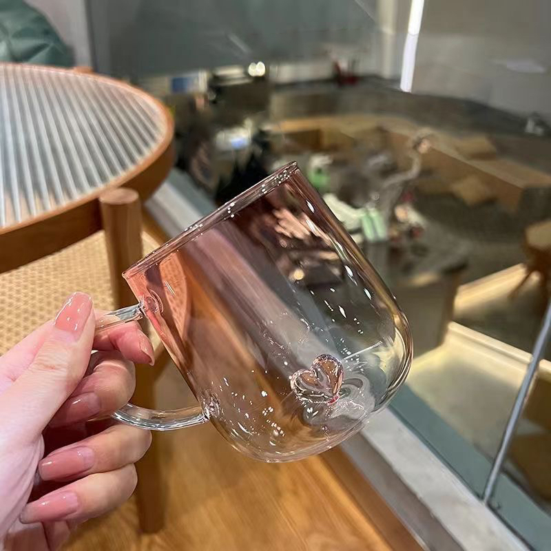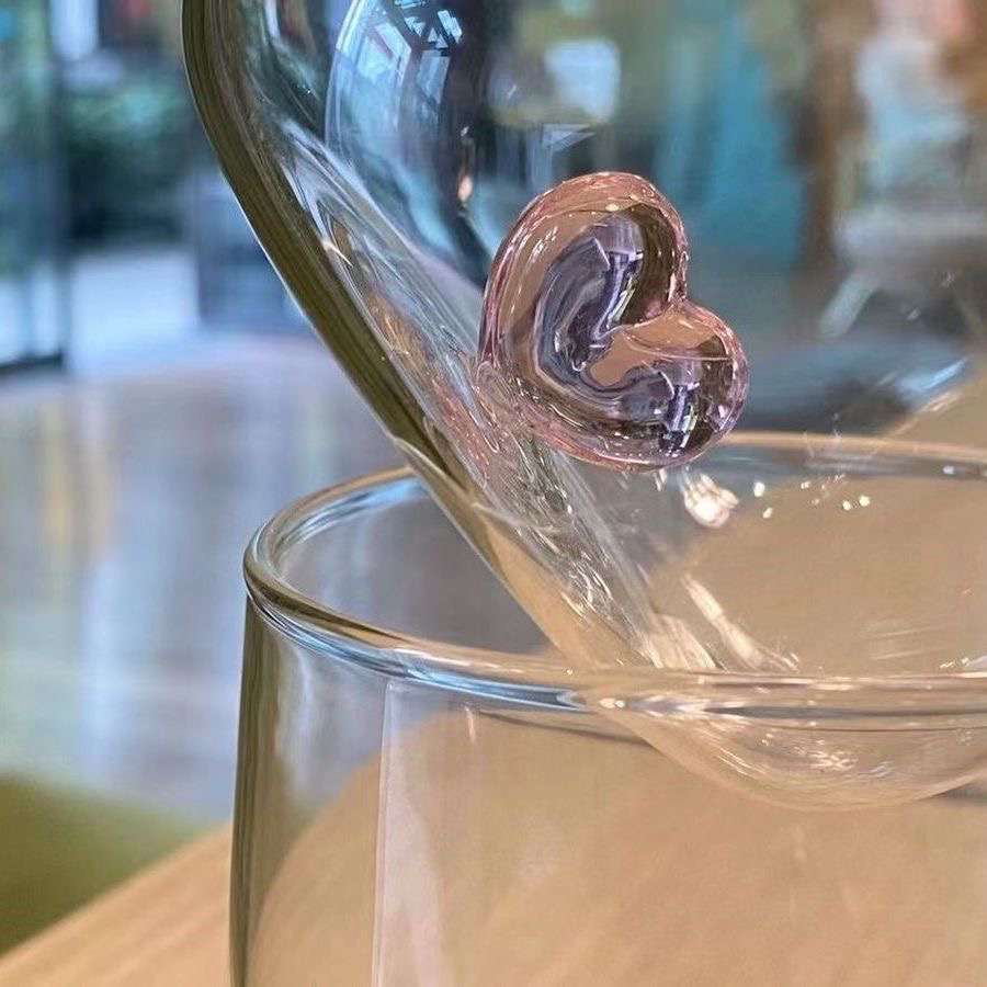 小眾設計感帶把玻璃水杯ins夏天水果茶杯耐熱咖啡杯果汁飲料杯子