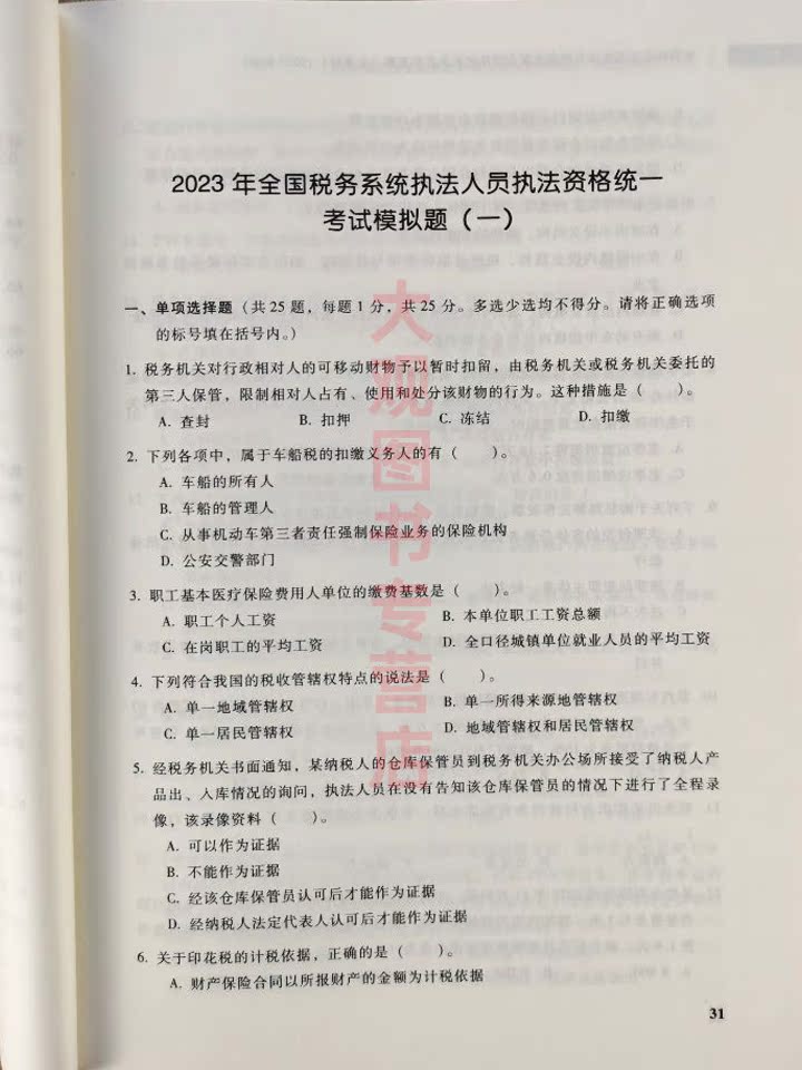 2023年全國稅務人員執法資格考試歷年真題精解及全真模擬試卷 通關寶典稅收執法習題