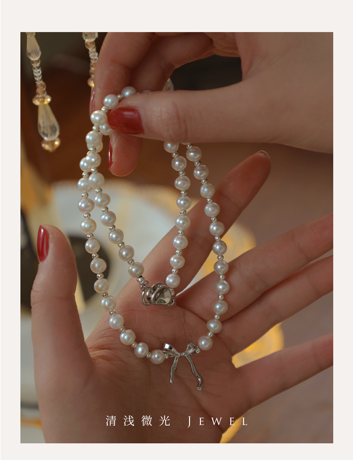清淺微光設計法式s925純銀天然淡水珍珠項鏈氣質蝴蝶造型甜酷頸鏈