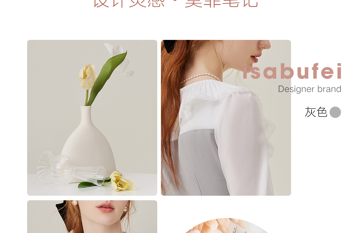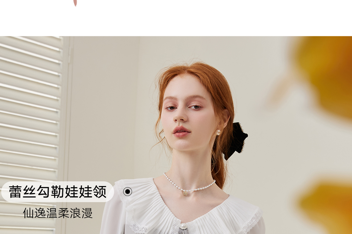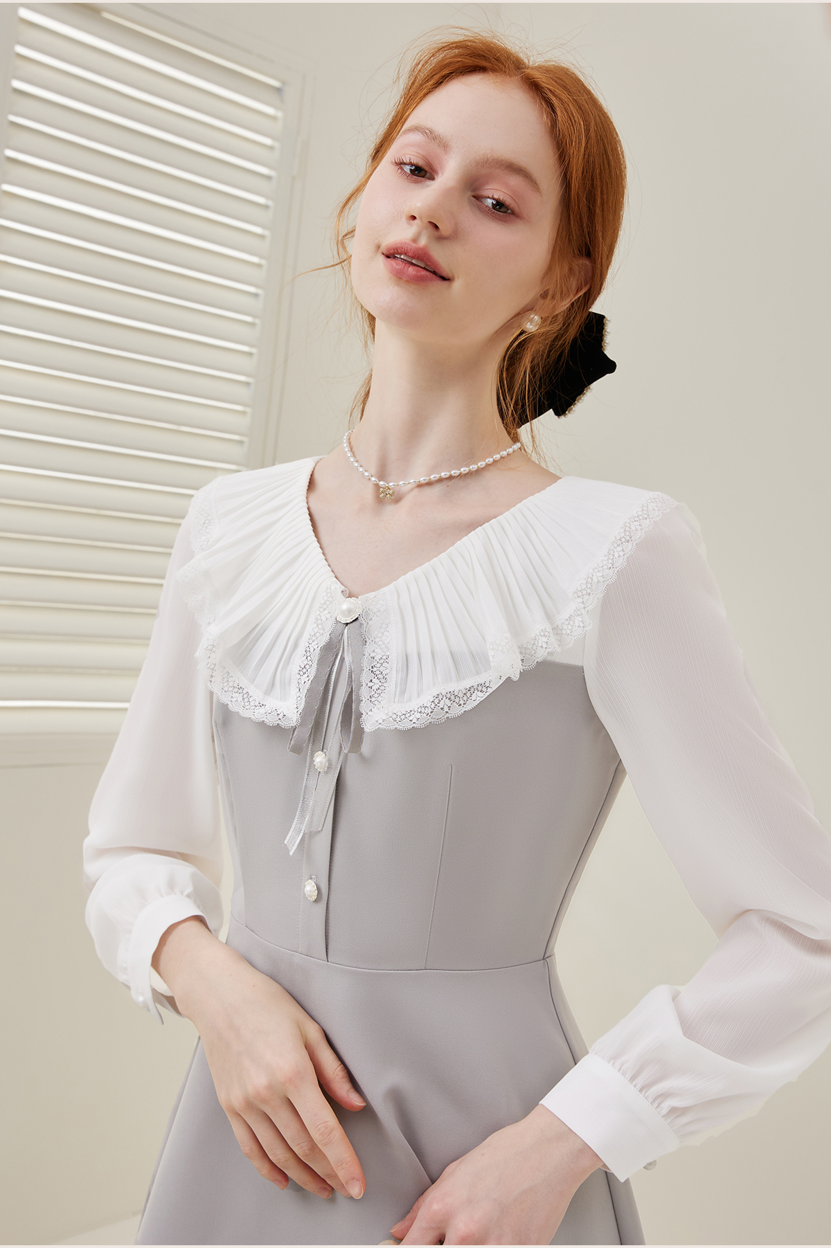 衣紗布菲湖眉小香風連衣裙女2023春季新款蕾絲娃娃領修身法式裙子