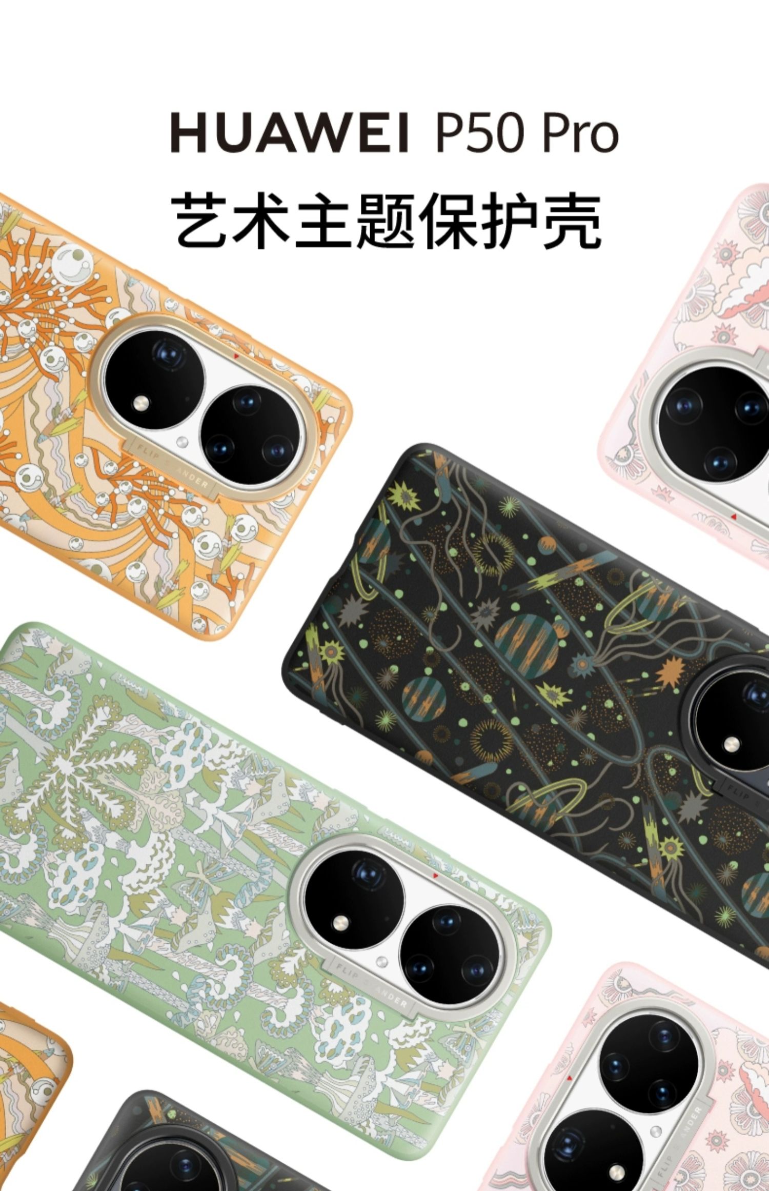 華為P50Pro手機殼原裝正品帶支架金屬環藝術主題P50/P50E保護殼新款時尚潮流四角全包防摔保護套男女官方原廠