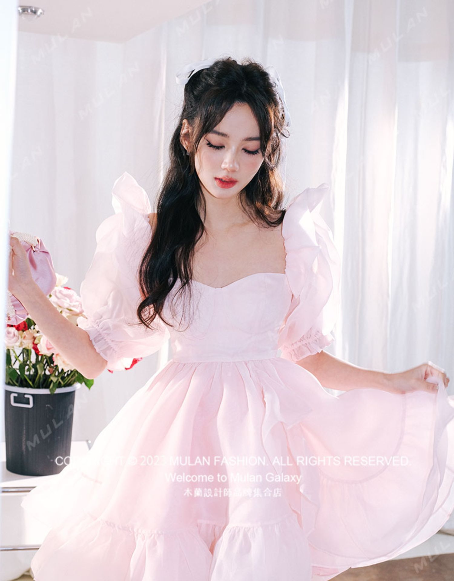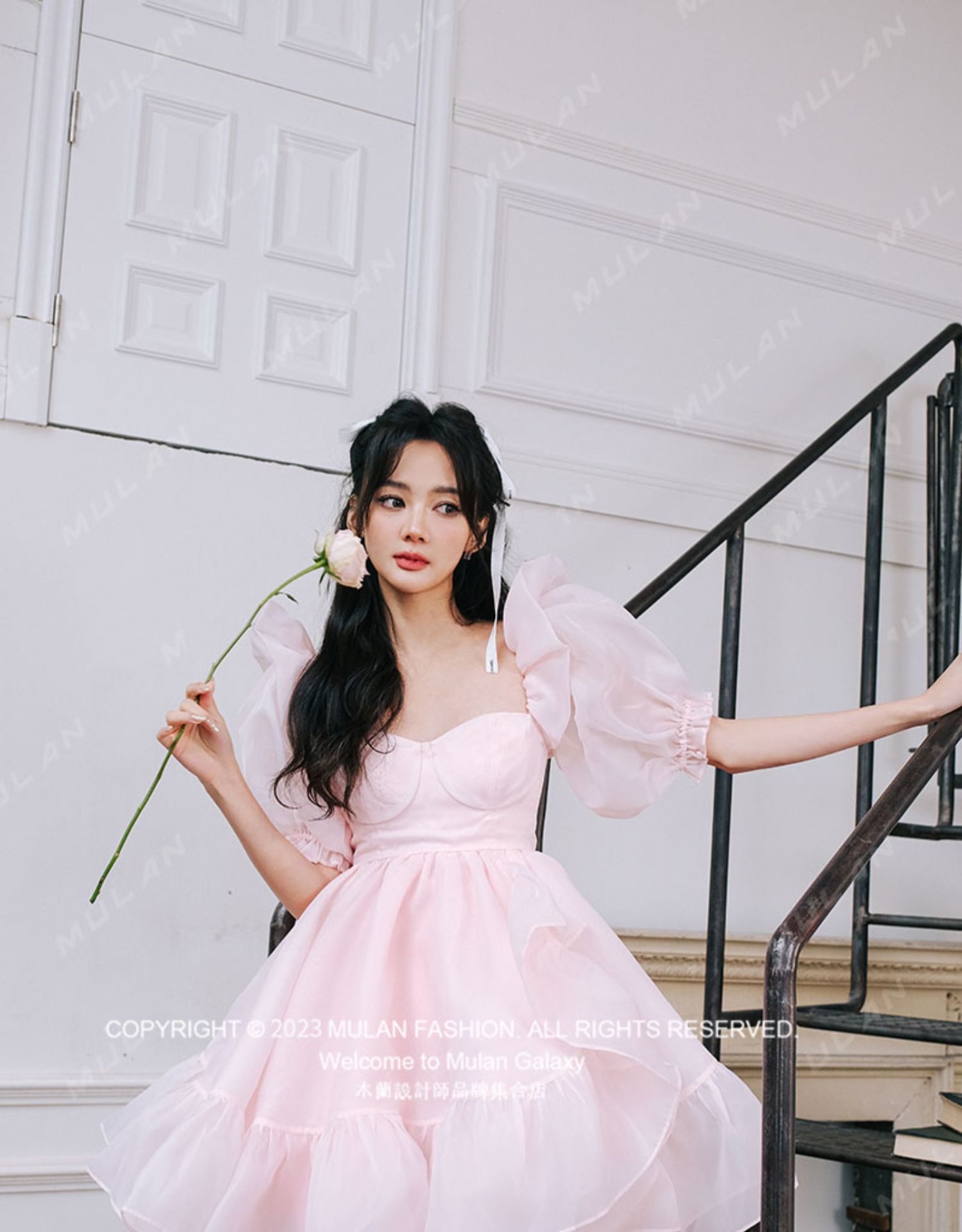 【國現】虞書欣早春新款泡泡袖蓬蓬裙