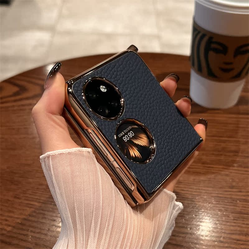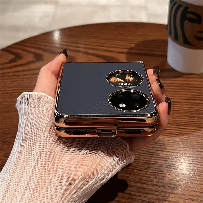 電鍍荔枝紋寶石藍華為p50pocket手機殼華為p50pocket保護殼華為p50折疊華為p50pocket手機包寶盒套新款女適用