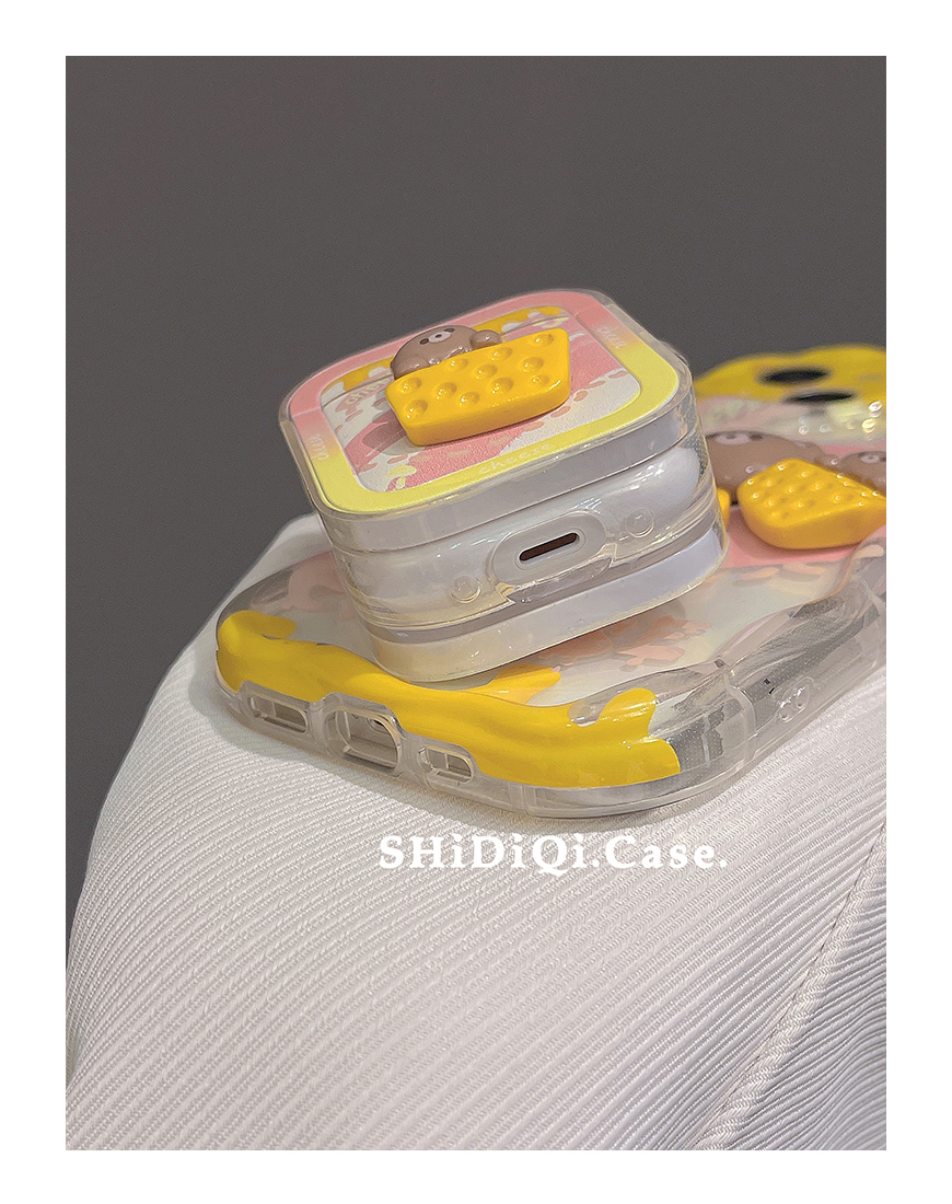 詩迪奇 卡通涂鴉立體奶酪芝士小熊適用iphone14promax手機殼帶手鏈蘋果14pro新款13軟殼12女11創意防摔耳機套