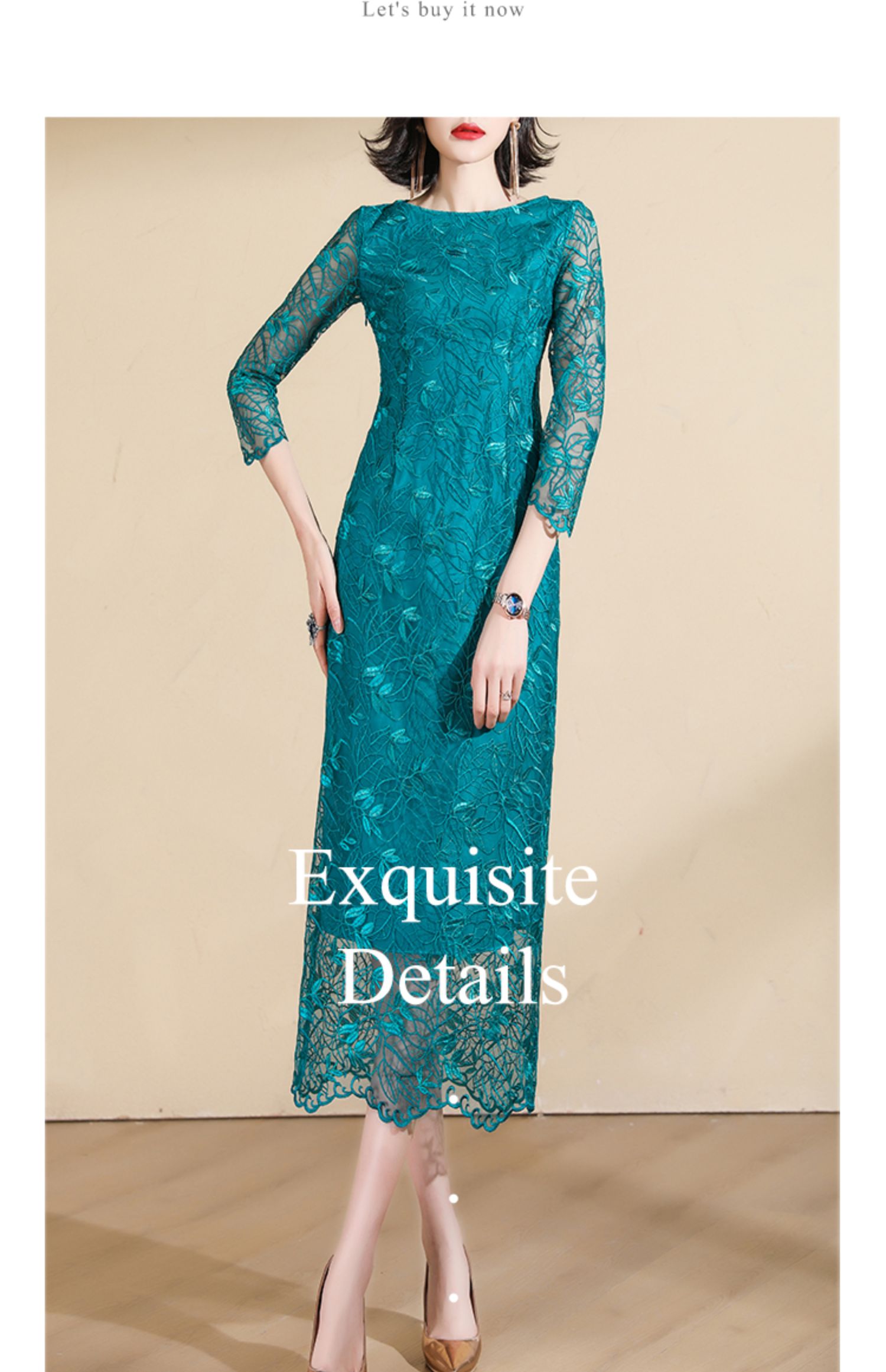 高級感蕾絲鏤空連衣裙女2023年夏季新款輕奢休閑收腰顯瘦長款裙子