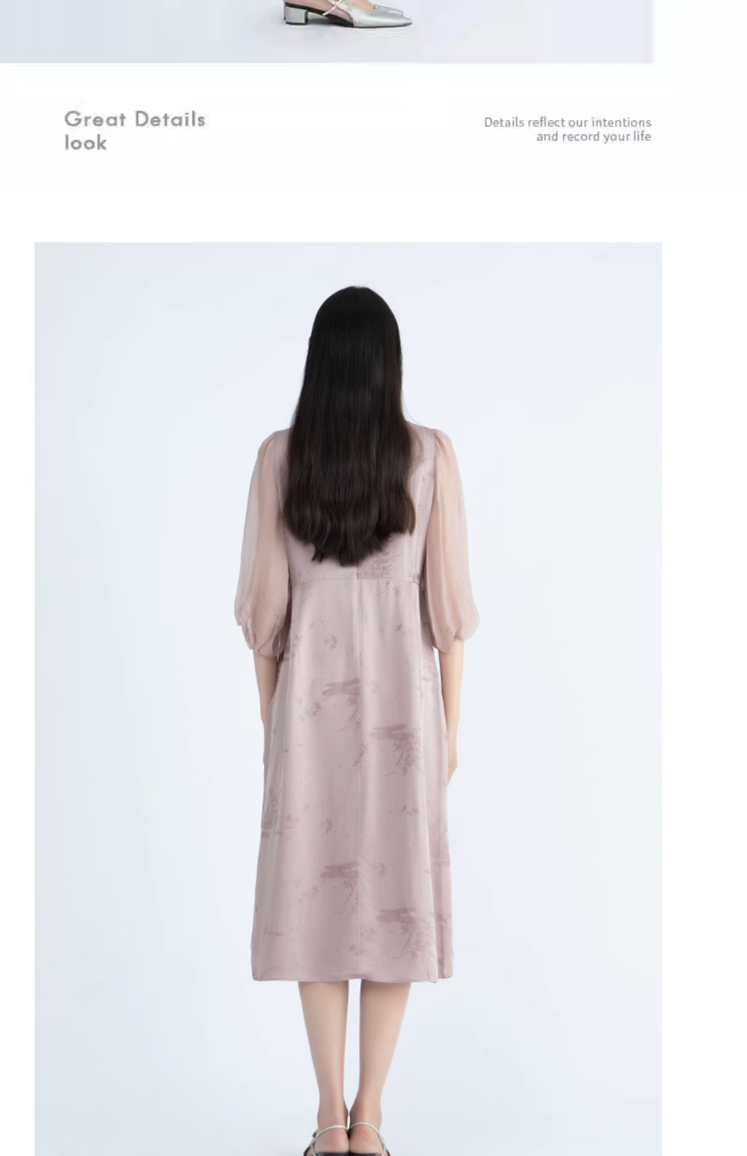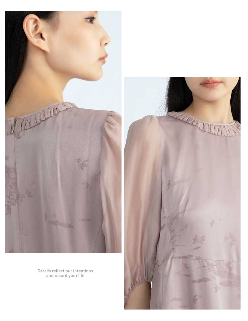readme女士中袖寬松真絲桑蠶絲提花氣質顯瘦中袖連衣裙B20843629