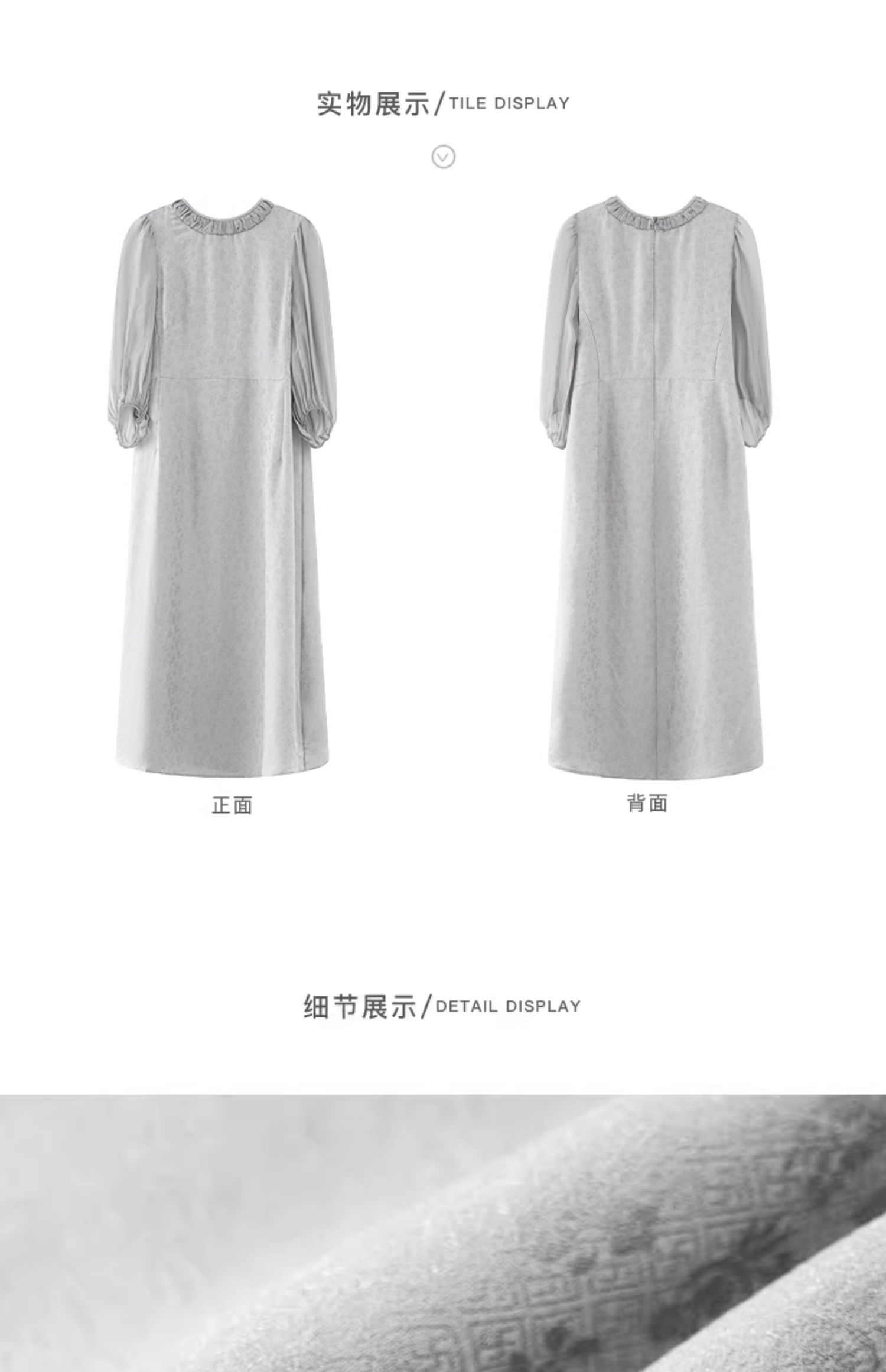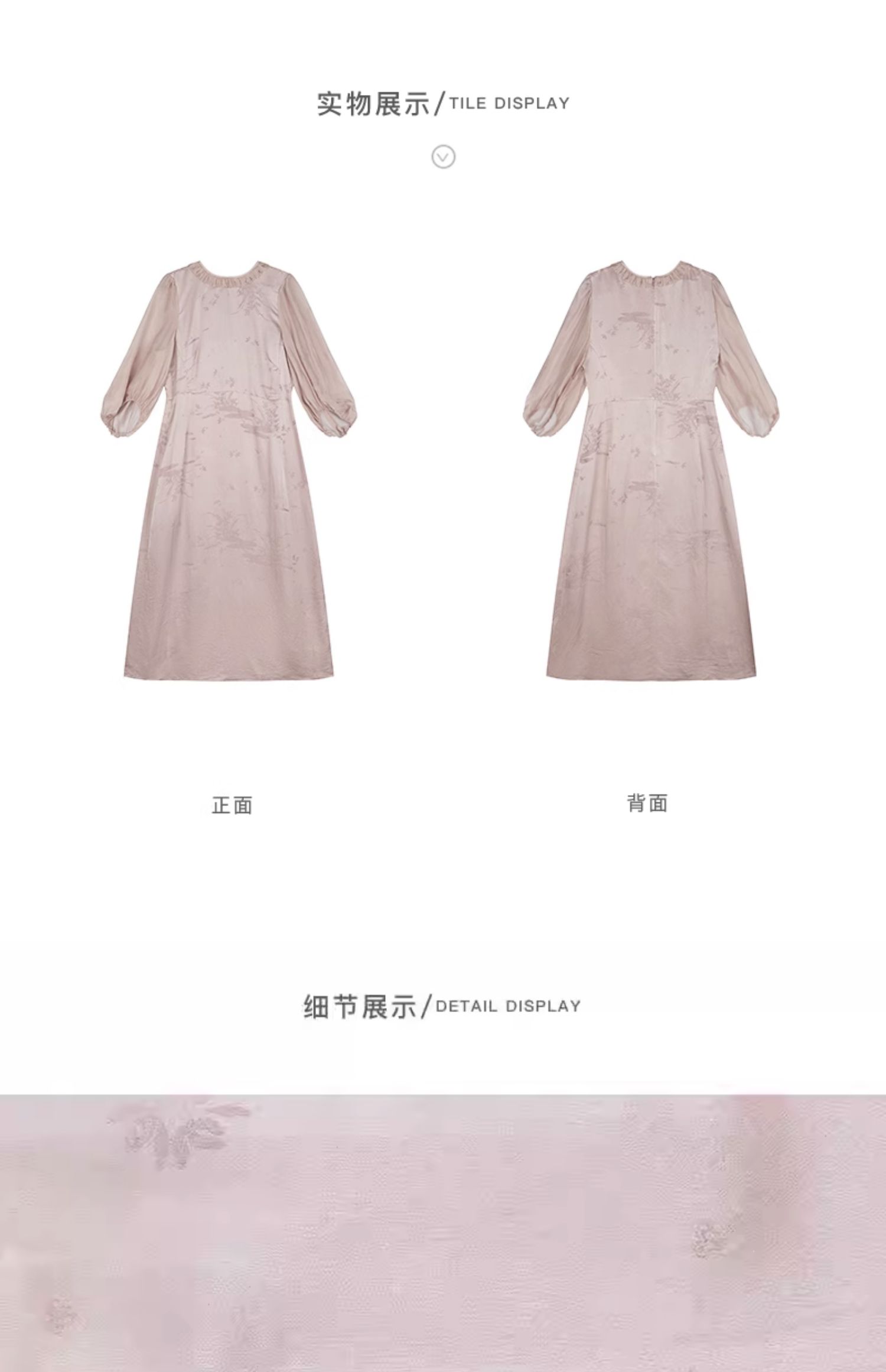 Readme讀我新品女長款優雅收腰氣質提花真絲連衣裙B30817323