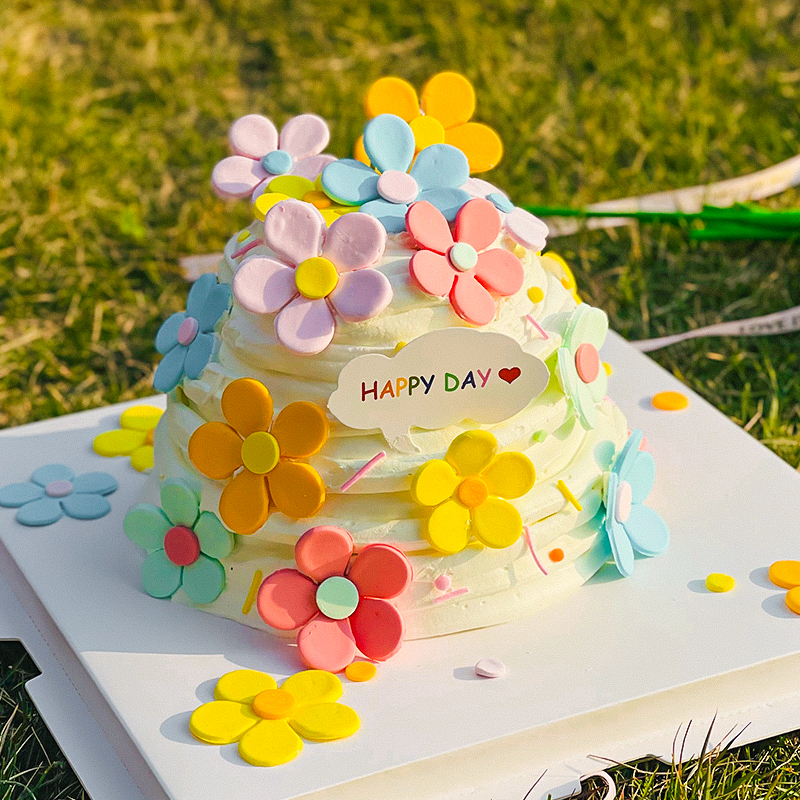 網紅ins蛋糕裝飾插件春日季Flower彩色小花插牌可愛兒童生日擺件