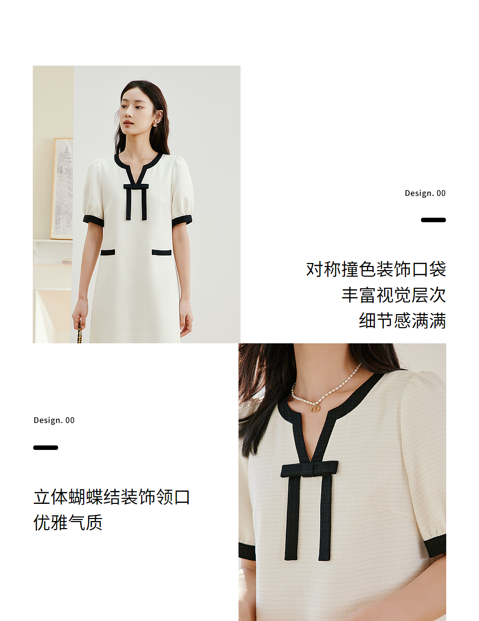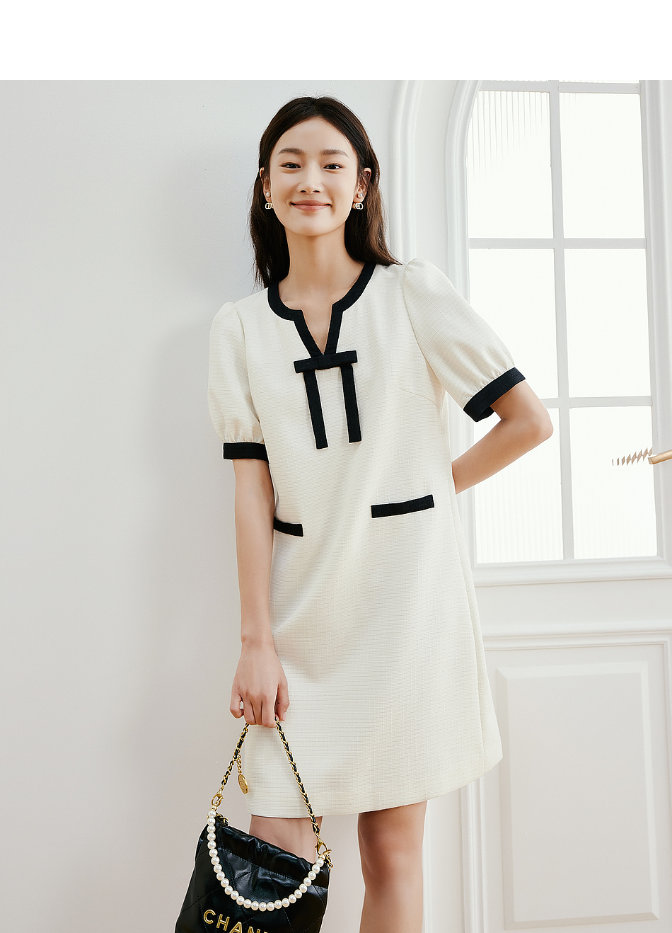 學院風polo領連衣裙女衣香麗影2023年夏季新款泡泡袖減齡復古裙子