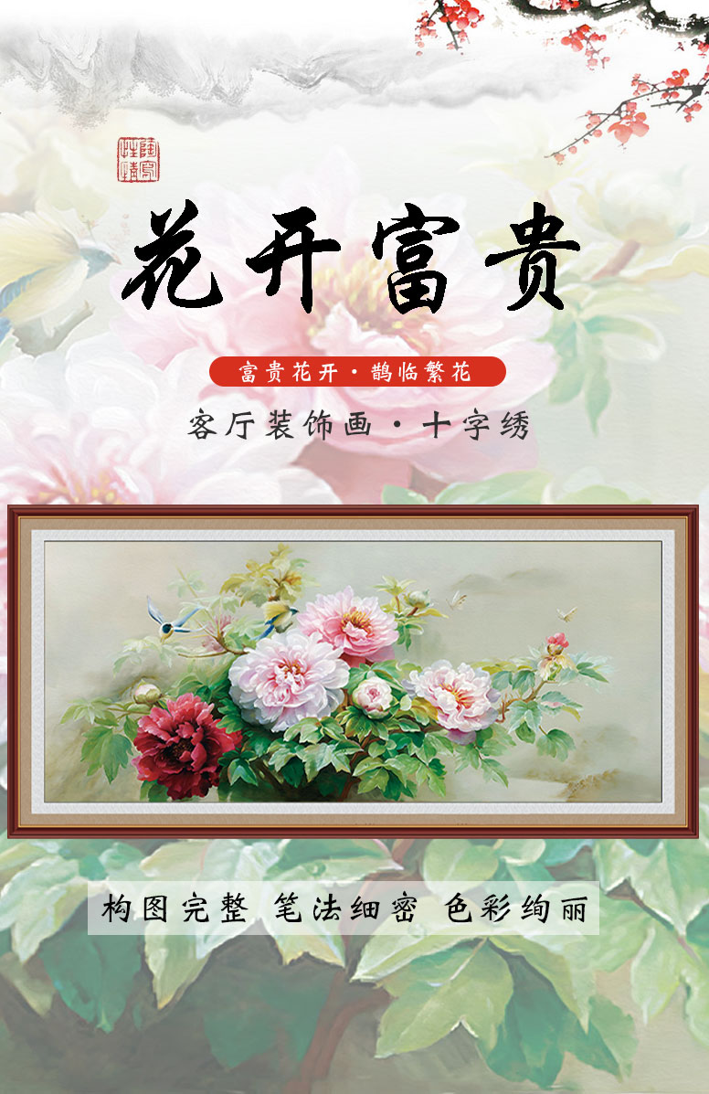 花開富貴十字繡2023年新款線繡客廳臥室手工自己刺繡玄關