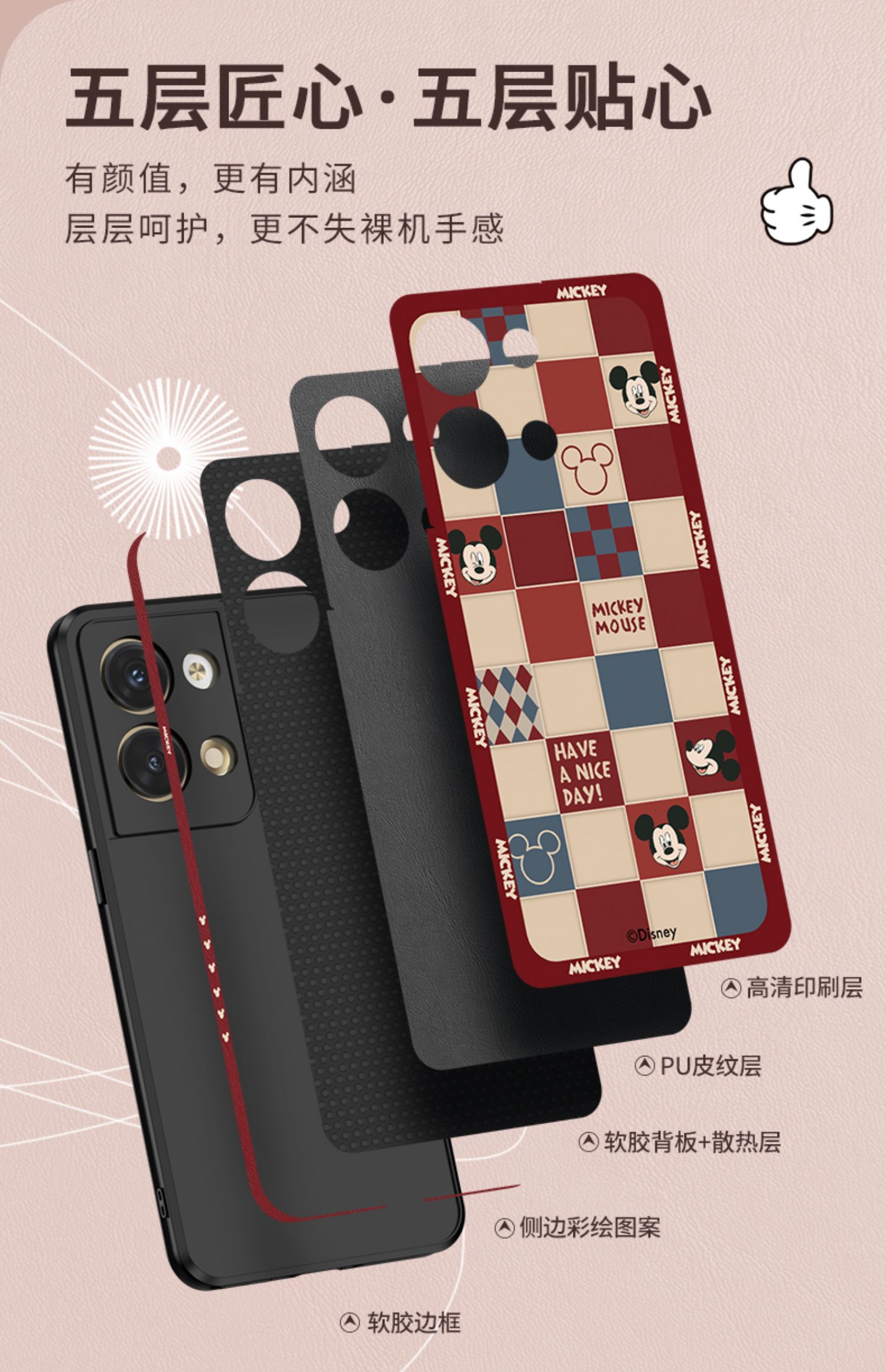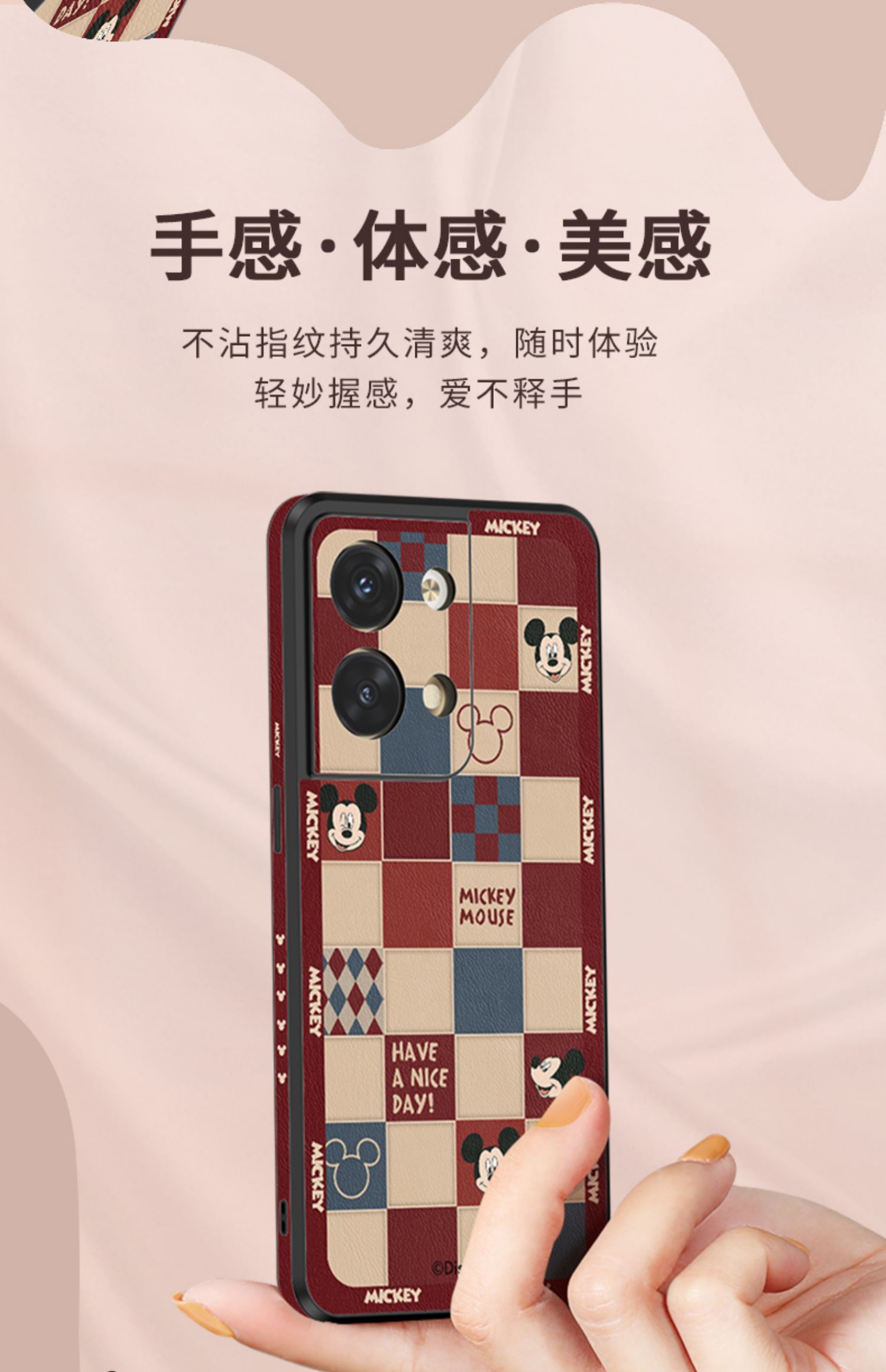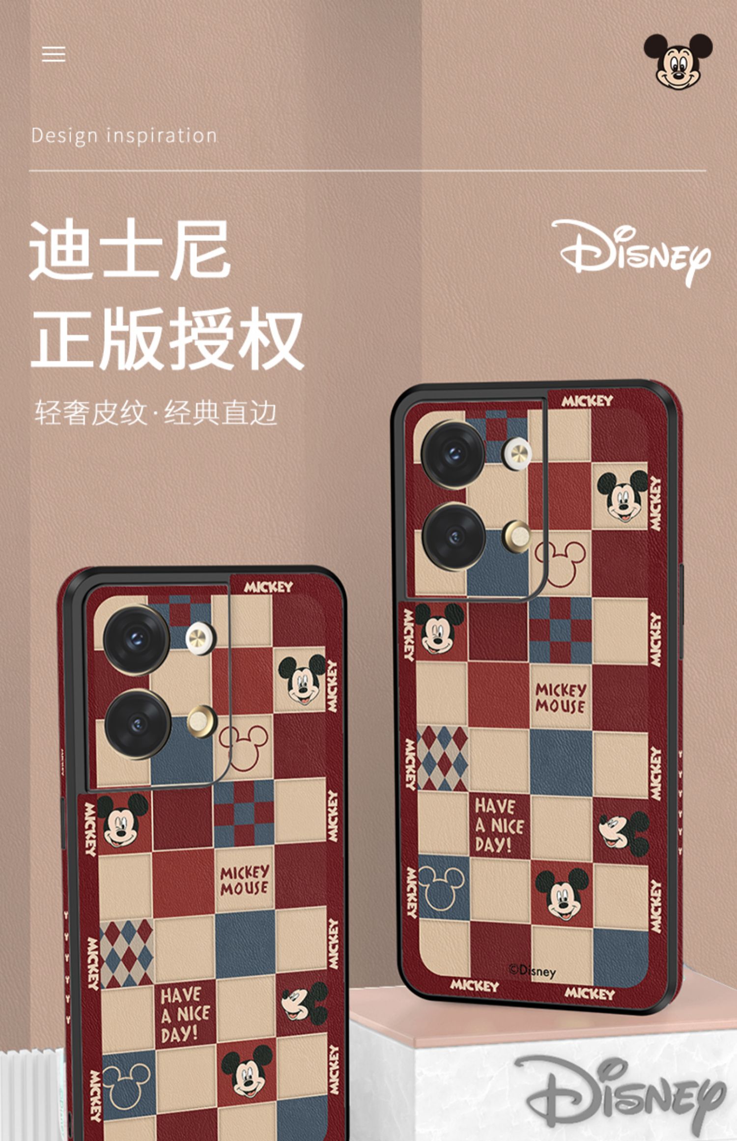 迪士尼正版適用opporeno9手機殼新款reno8pro十女小羊皮7防摔全包6pro女士高級感5薄保護套格子por米奇棋盤格