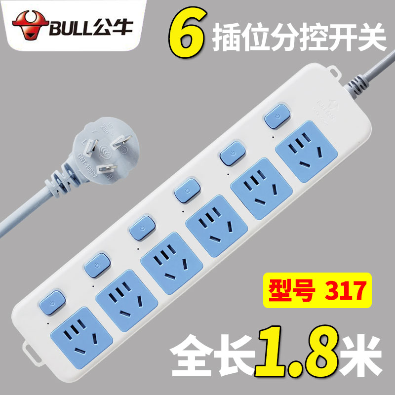 公牛插座家用獨立開關分控多位多功能拖接線板3米5電排插板帶長線