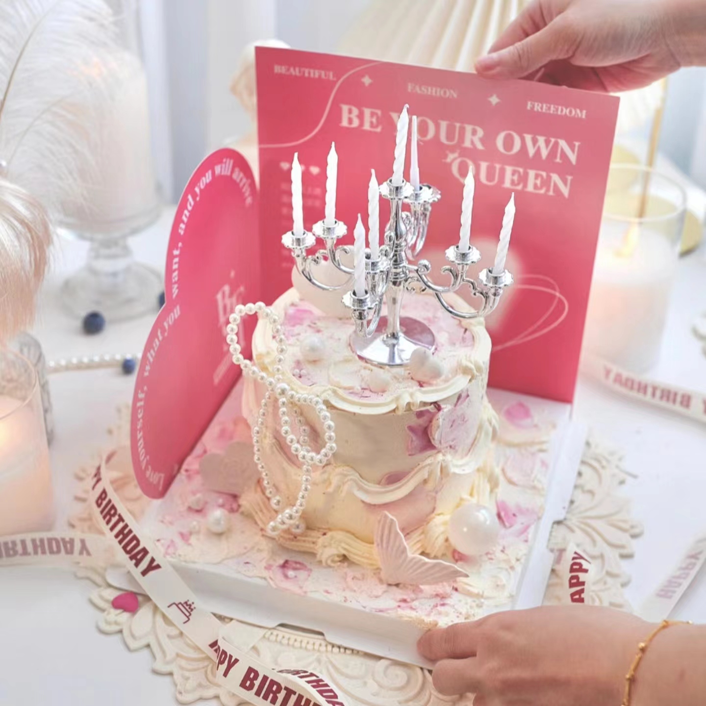 網紅復古歐式銀色燭臺蛋糕裝飾擺件女神仙女生日裝扮烘焙插件配件