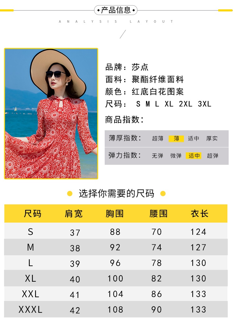 莎點荷葉邊v領雪紡大擺飄逸沙灘裙