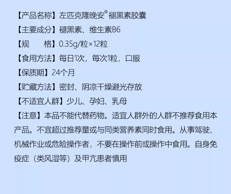 右佐匹左克隆片左佑佐左匹克隆片褪黑素助安瓶眠B6閃睡GABA片膠囊