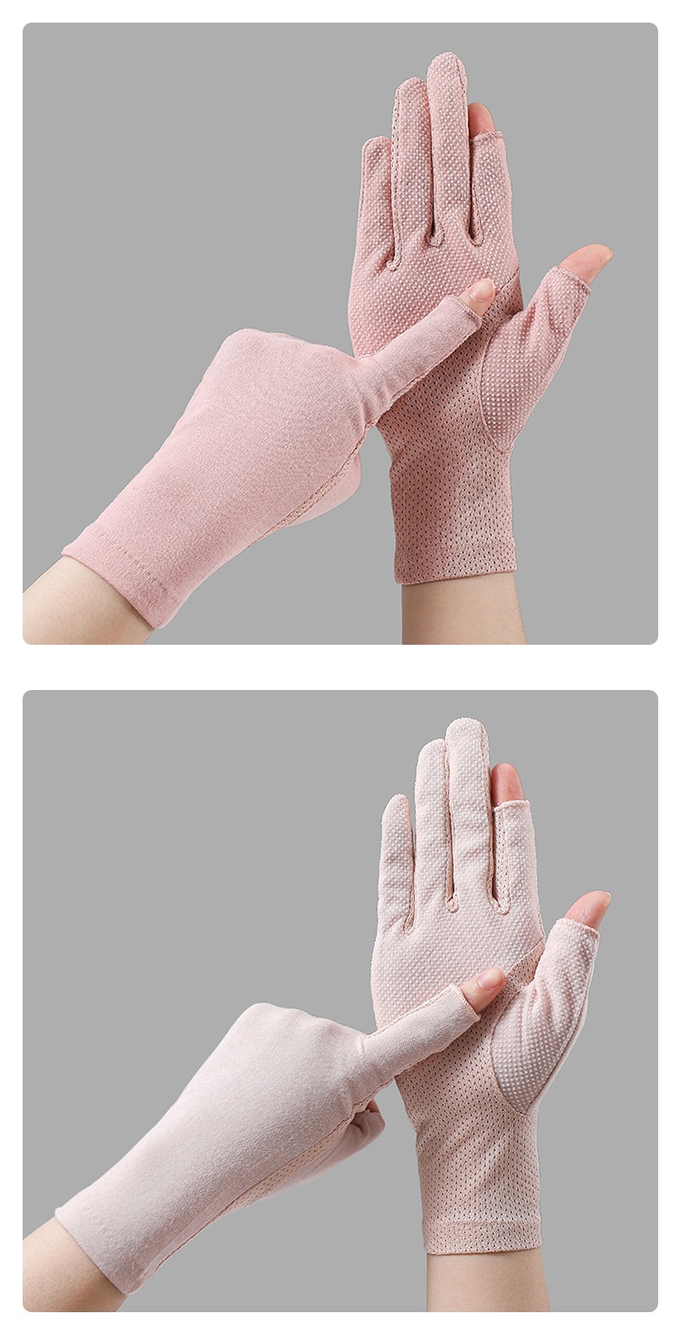 開車防曬手套女防紫外線騎行防滑露指采茶漏二指薄款半指純棉夏季