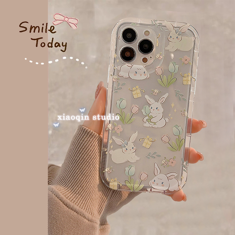適用opporeno9pro手機殼reno7/8pro+碎花兔清新3元氣4se/5/6氣囊全包防摔高透趣味少女夏新款高級感ins小紅書