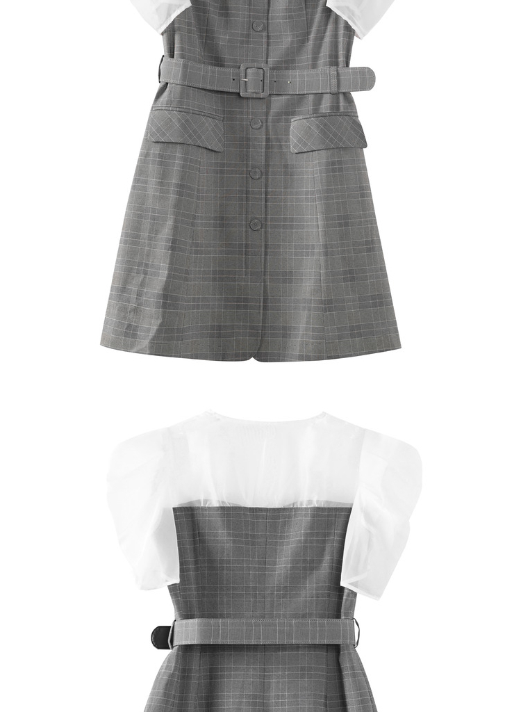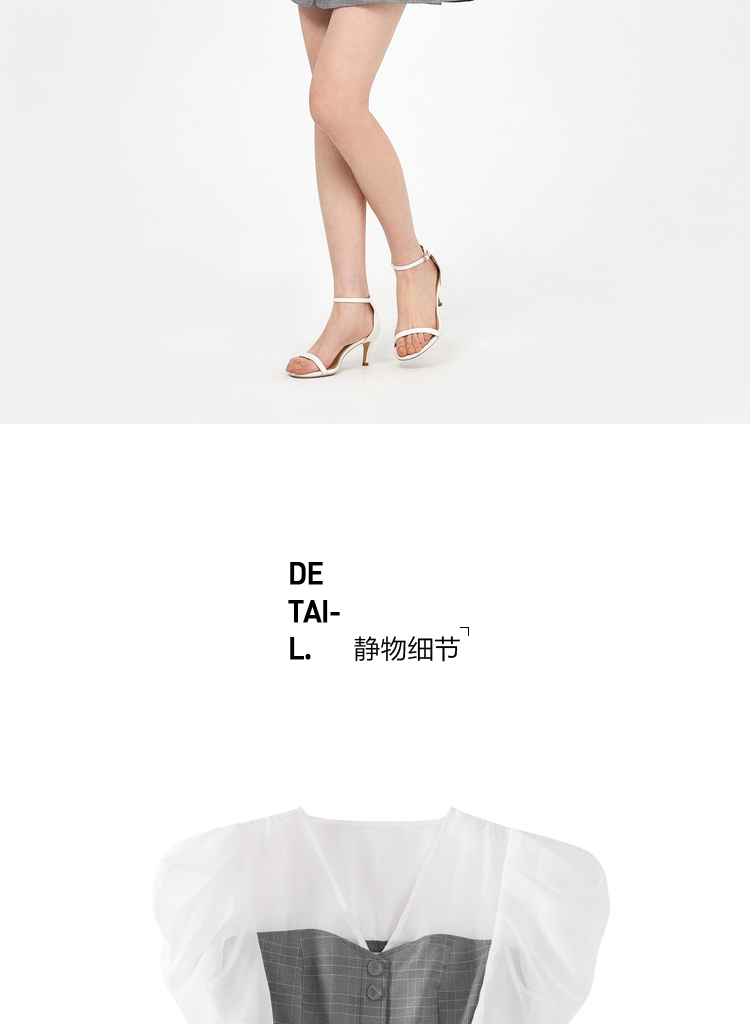 飄蕾V領拼接假兩件連衣裙女2023夏季新款收腰氣質A字短裙peoleo