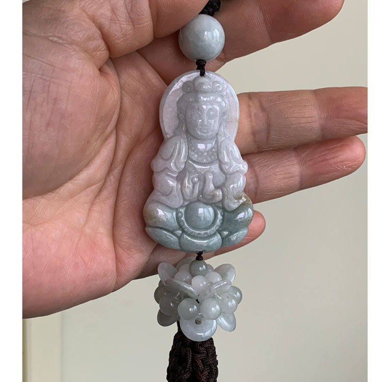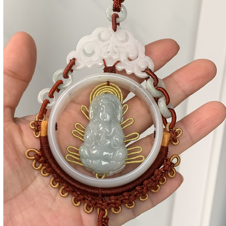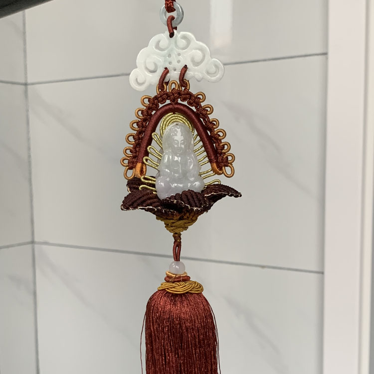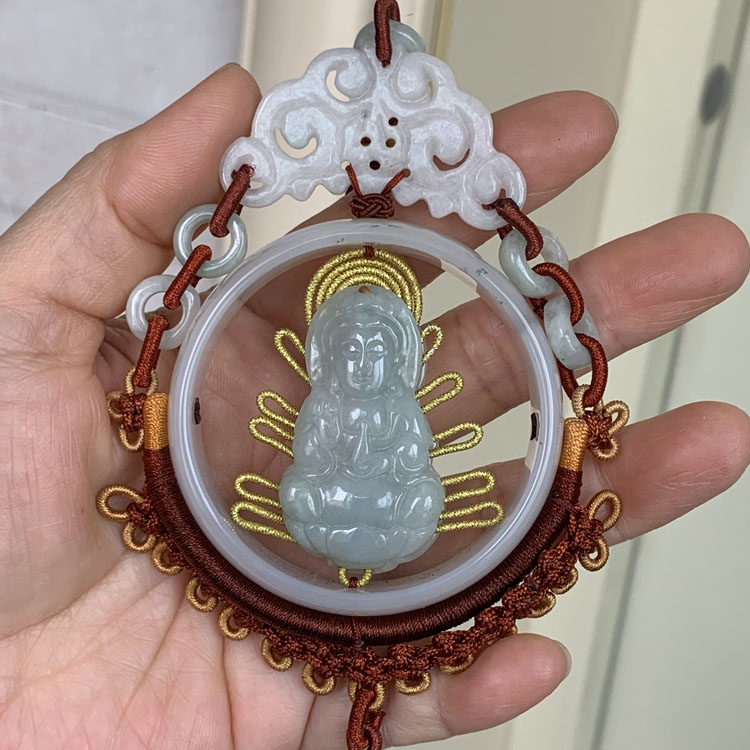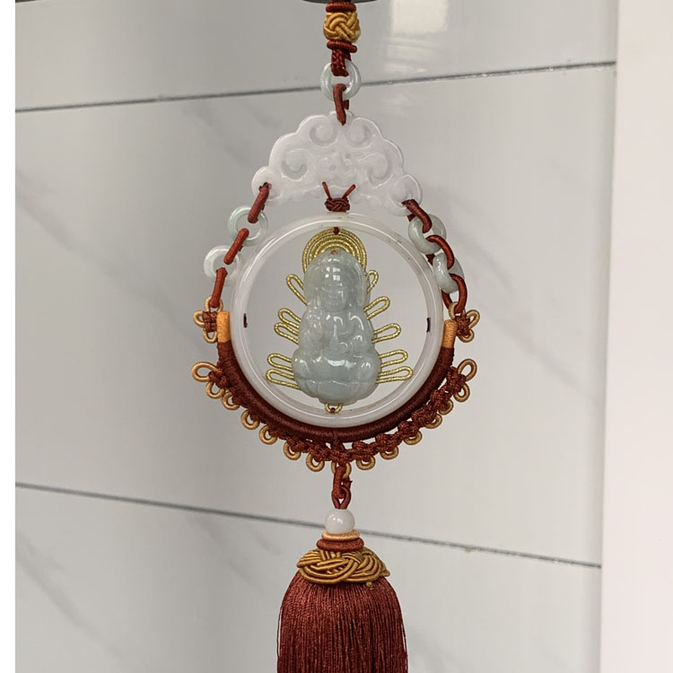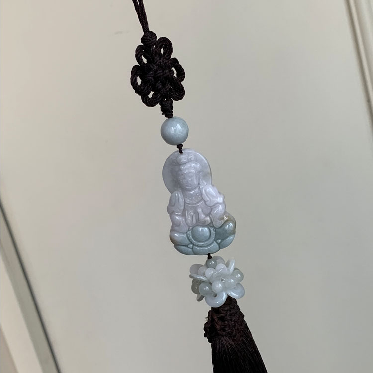 天然翡翠雕刻觀音車掛