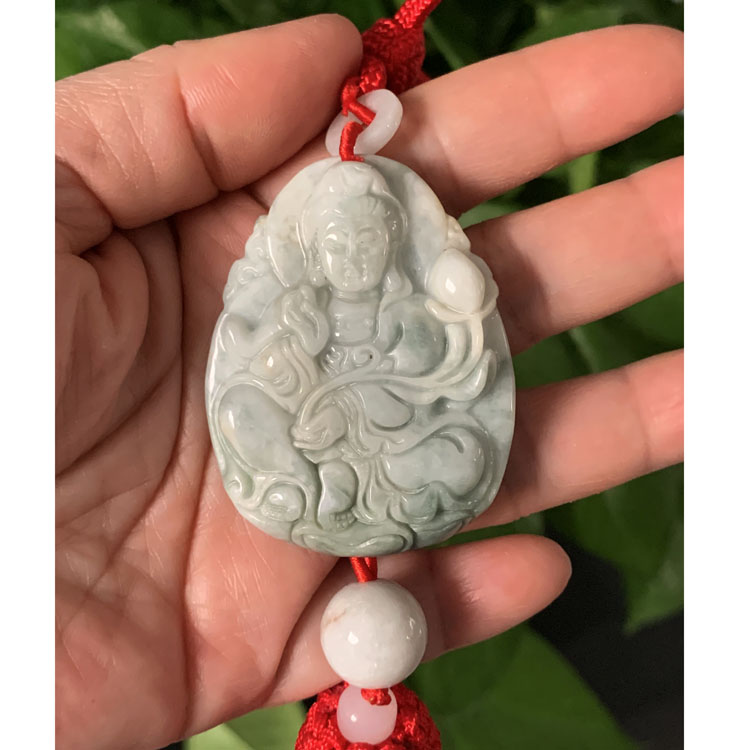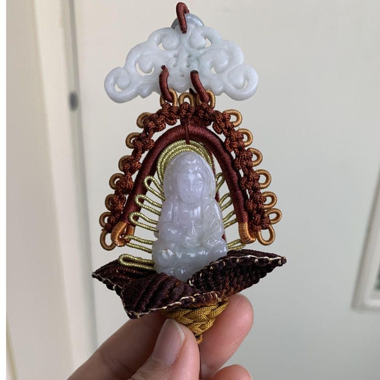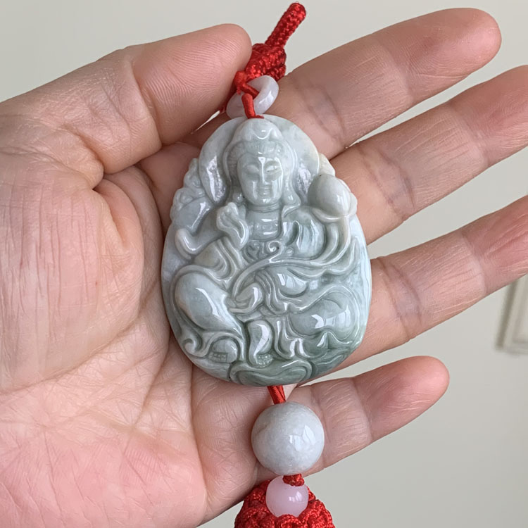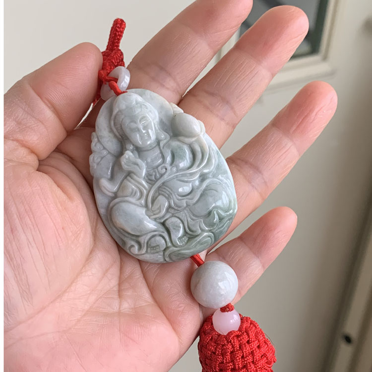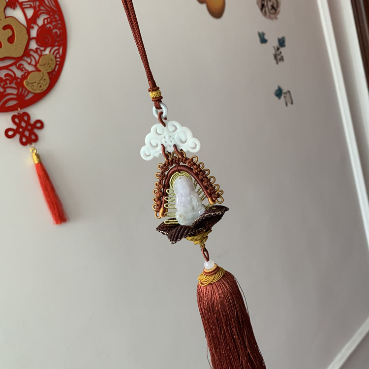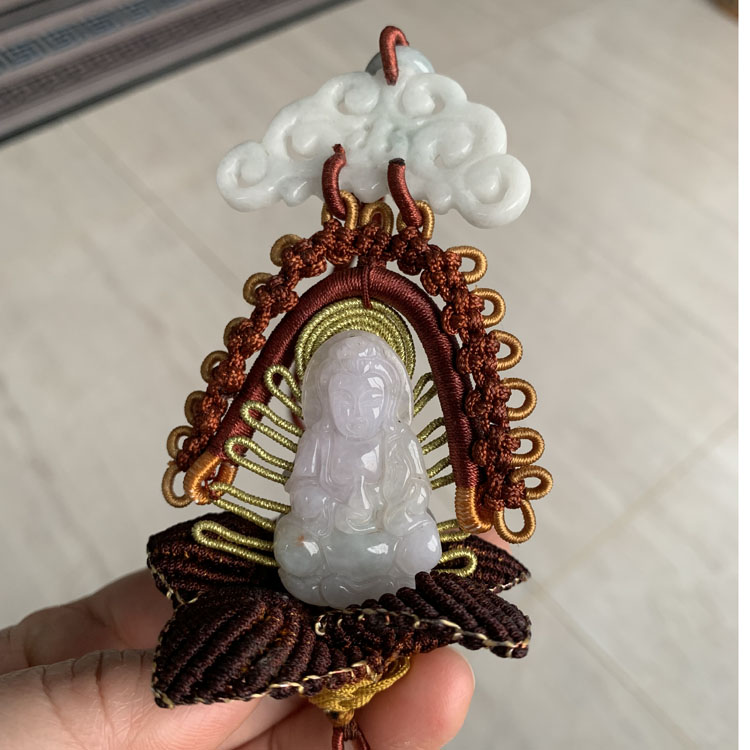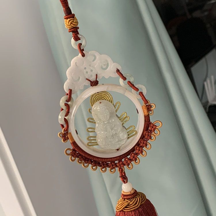 天然翡翠雕刻觀音車掛
