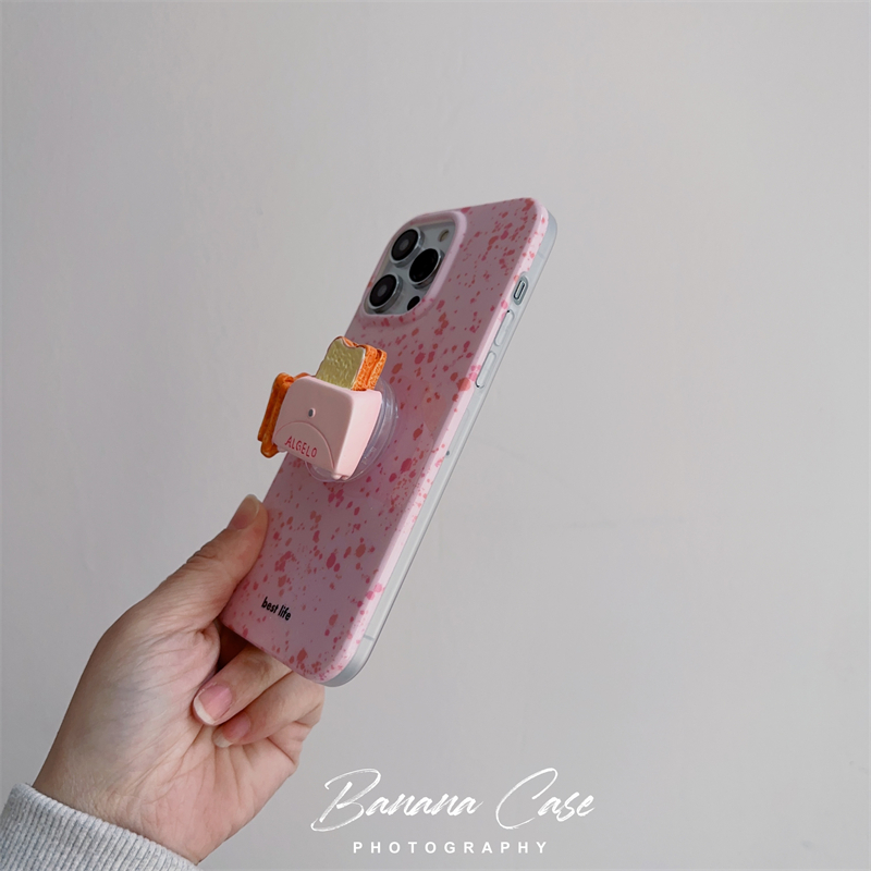 小眾ins少女粉潑墨適用iphone14pro手機殼13promax可愛面包機支架12pro蘋果11光面xsmax硅膠xr軟殼15promax女