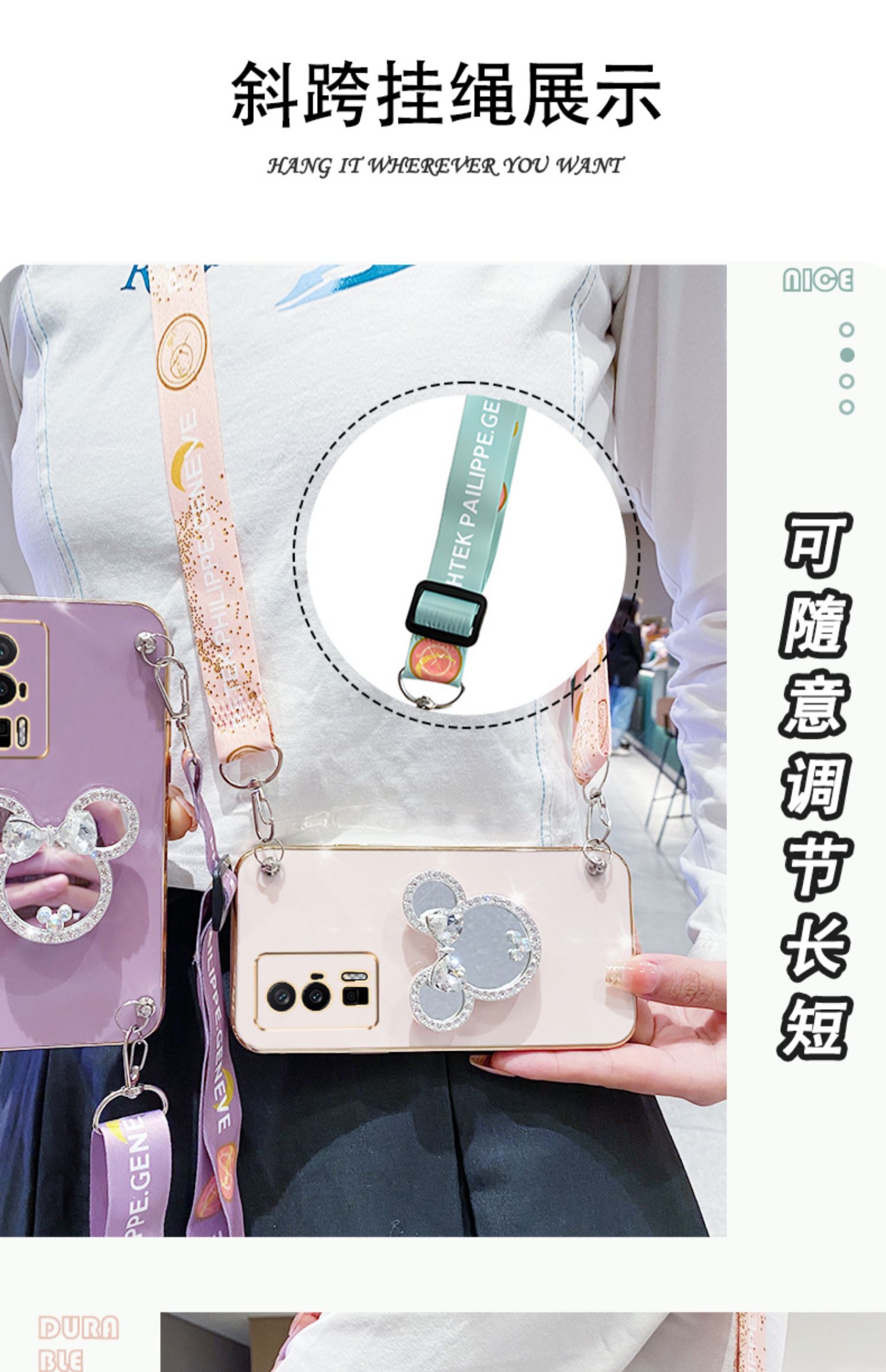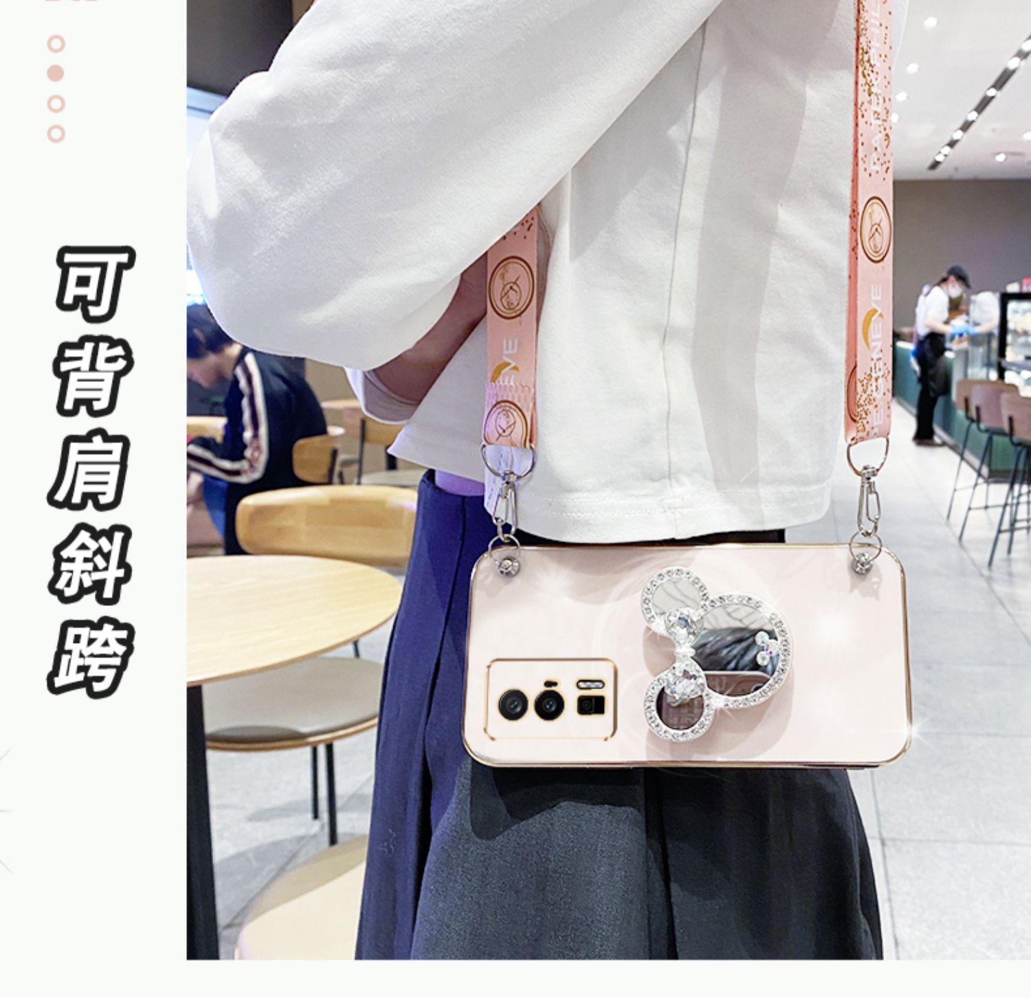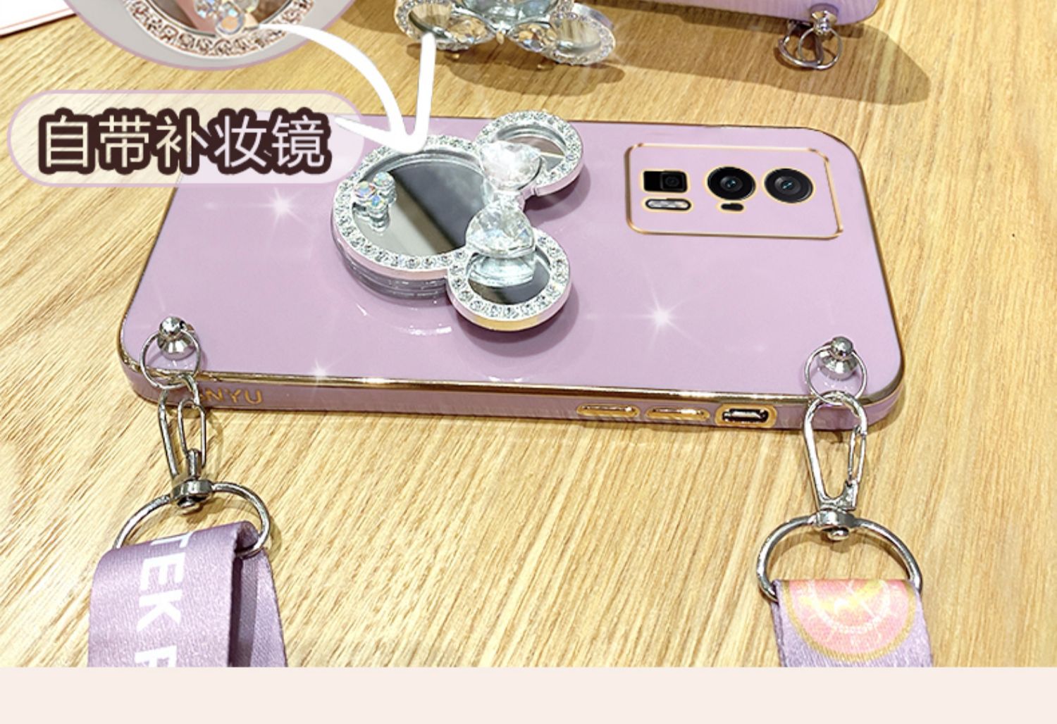 適用帶補妝鏡子支架小米紅米k60手機殼女新款水鉆k50可斜挎k40pro+背帶k30s至尊版掛繩k20防摔硅膠鏡頭全包邊