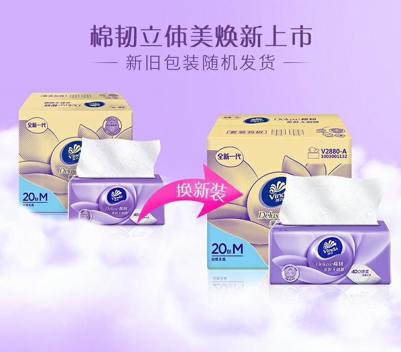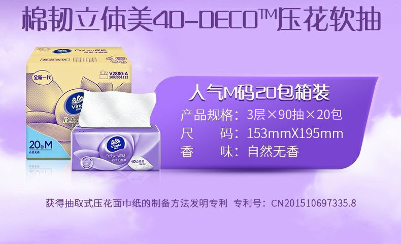 維達抽紙棉韌立體美110抽20包整提家用實惠裝壓花餐巾紙衛生紙巾