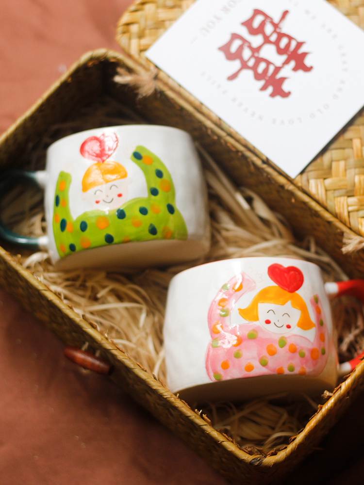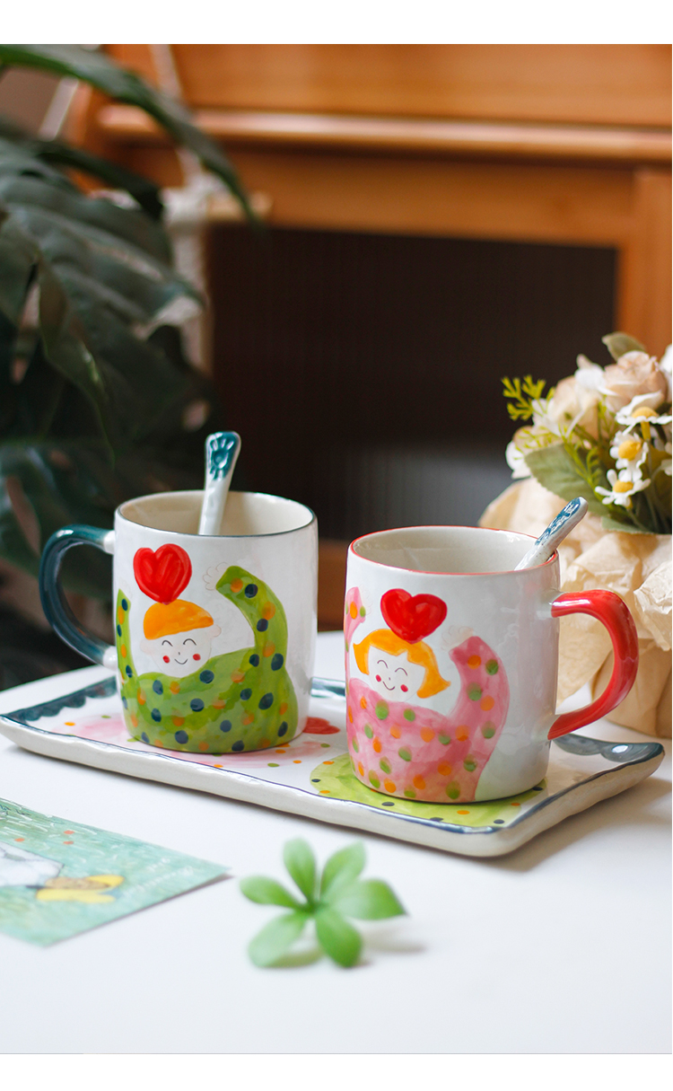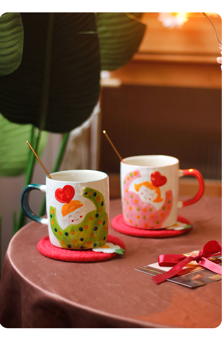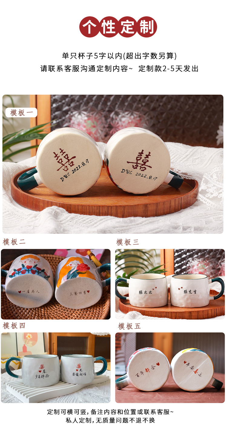 沐夏囍禮手繪馬克杯陶瓷杯子家用情侶水杯可愛高顏值閨蜜結婚禮物