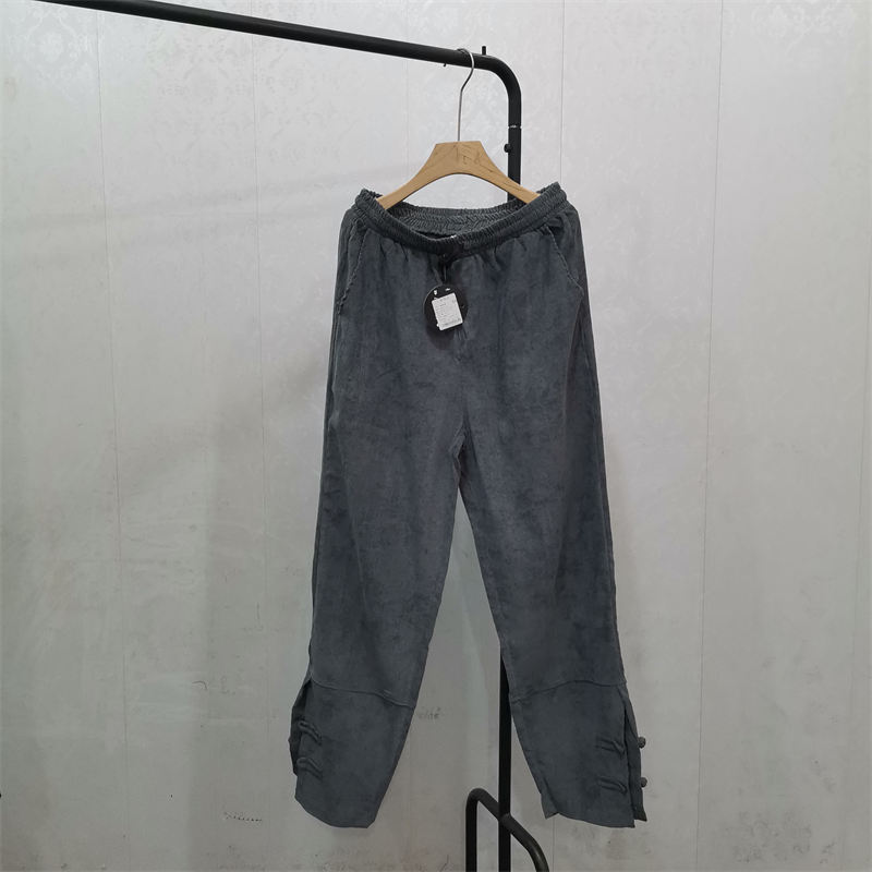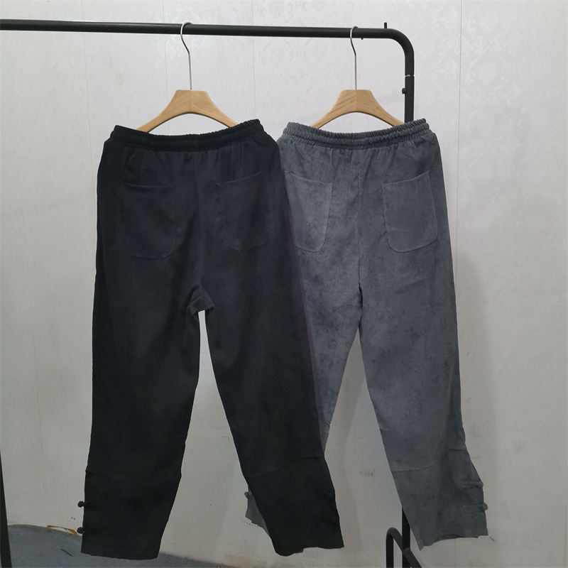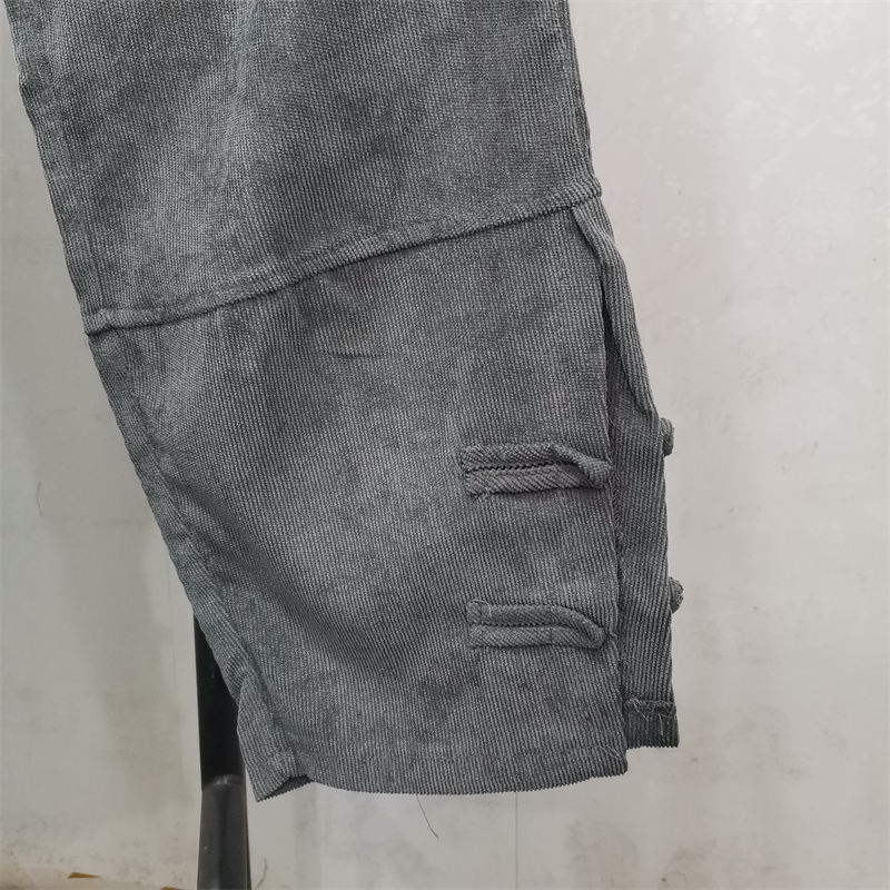 春季條絨哈倫褲盤扣直筒長褲中國風男裝燈芯絨褲子寬松闊腿休閑褲