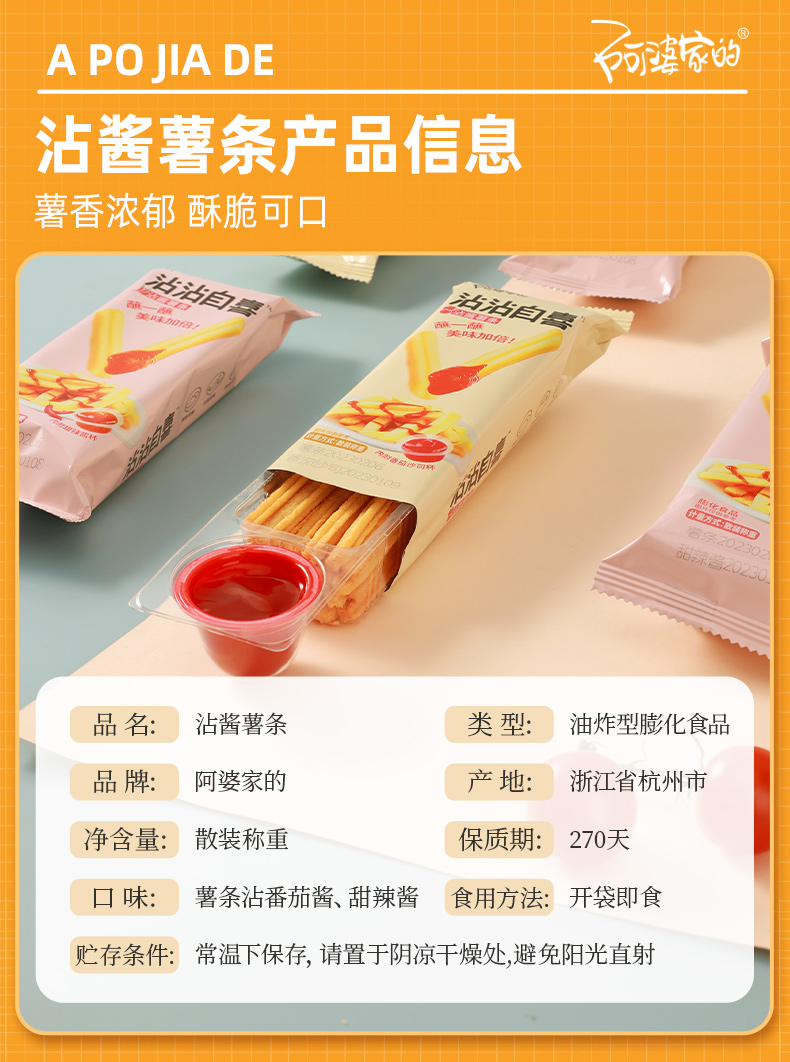 阿婆家的沾醬薯條薯片小零食晚上兒童解饞休閑食品大禮包小吃整箱