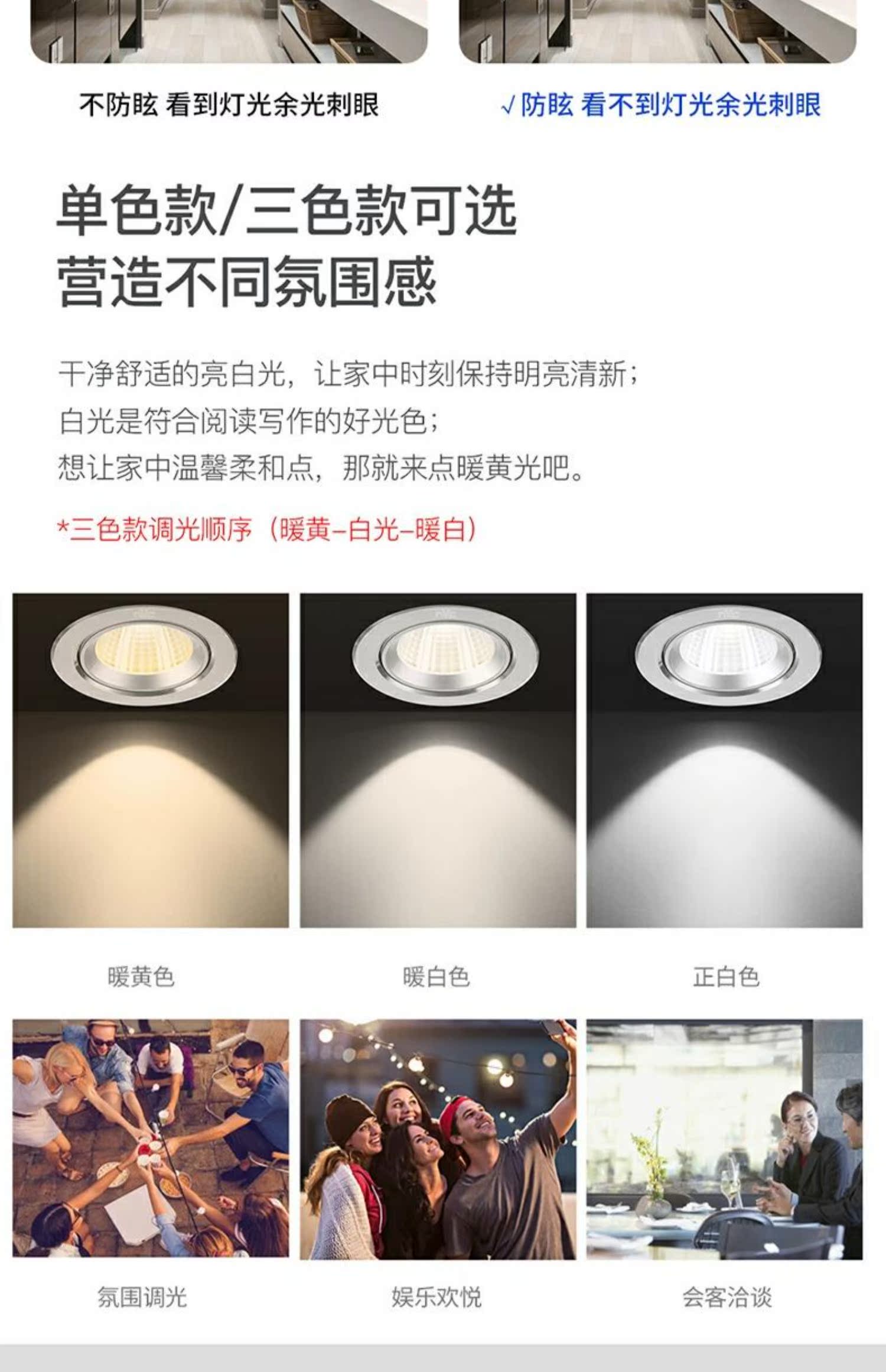 雷士照明cob防眩嵌入式家用天花燈