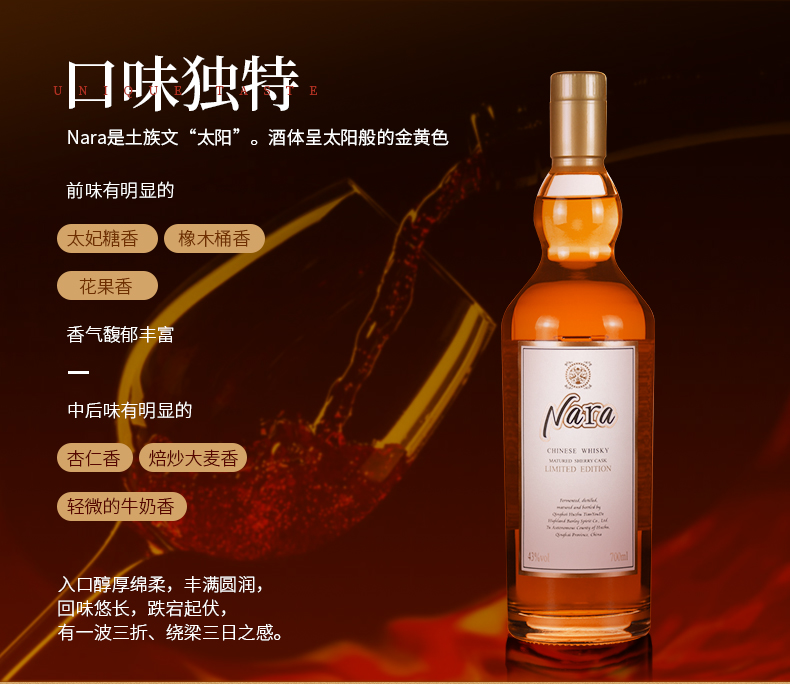 天佑德 Nara雪莉桶陳釀威士忌700ml(限量版)青海酒廠送禮