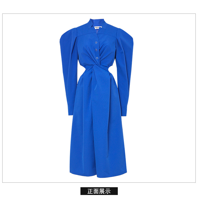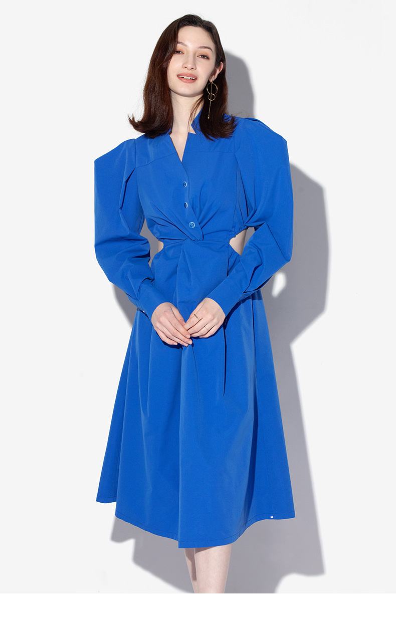 設計點:1.扭結門襟,設計感十足2.腰部鏤空、秀出迷人腰線3.設計感衣袖、設計感十足/后中隱拉