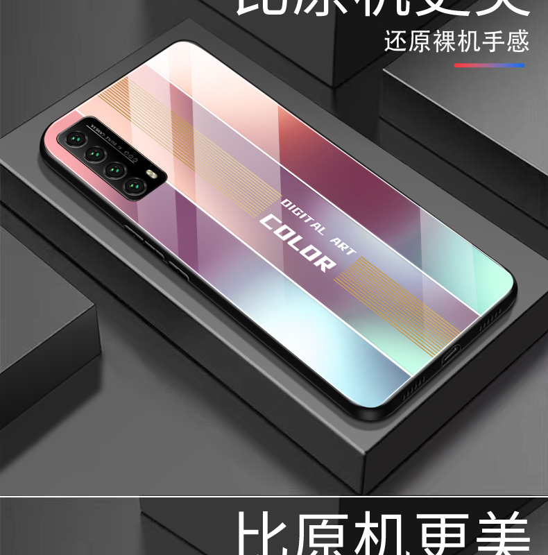 適用暢享20SE手機殼玻璃華為暢享20se超薄玻璃撞色全包邊防摔男女保護套