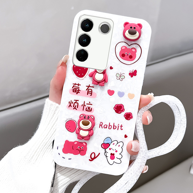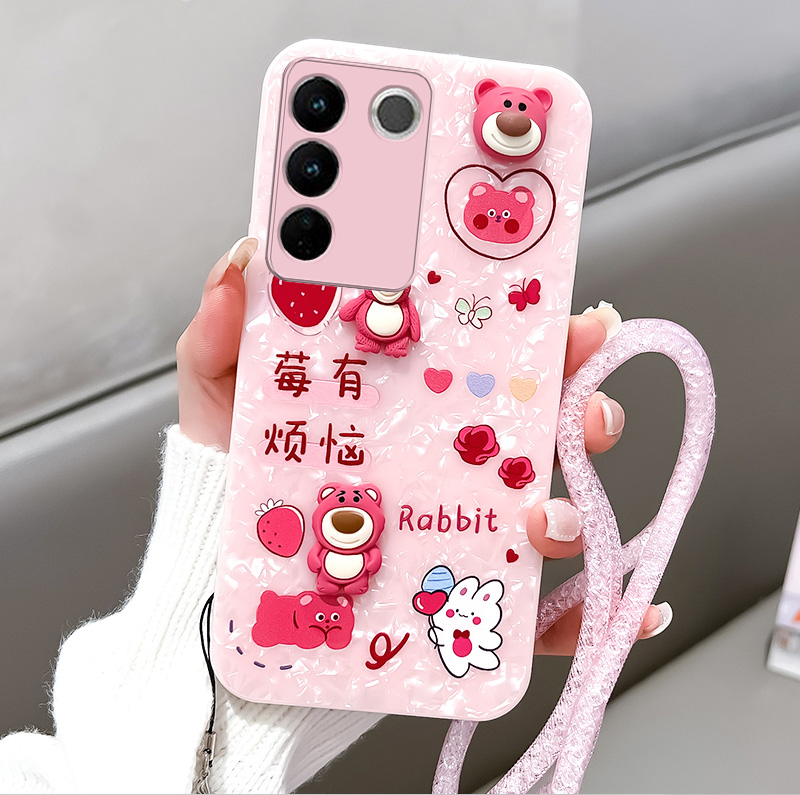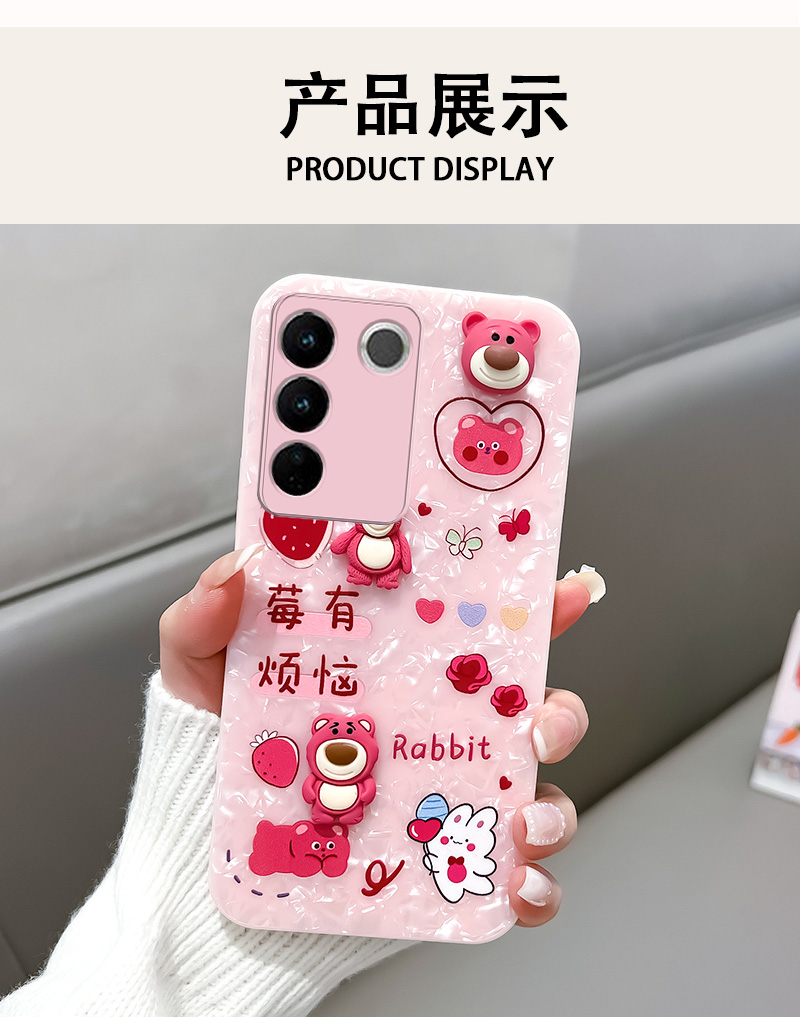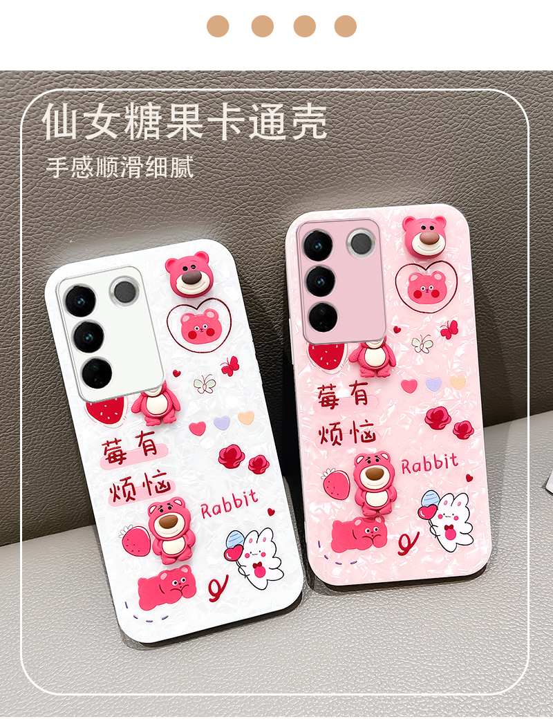 粉色仙女貝殼小熊適用vivos16手機殼新款S17E全包防摔S15pro女可愛s12/7/6/5曲屏1女款vivis10/S9/S7E女夏季P