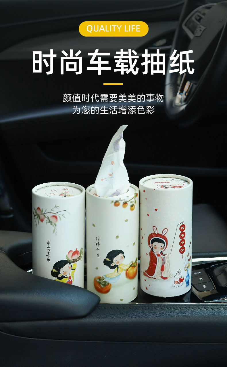 無染車載圓筒紙巾盒桶裝抽取式抽紙